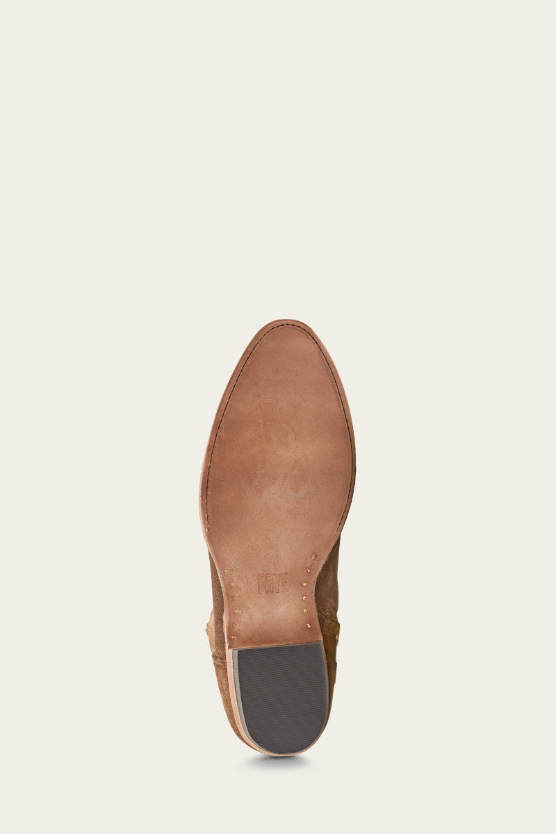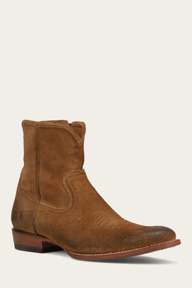 A classic Western boot with modern versatility, built for durability through Goodyear welt construction. It features a scalloped topline with toe stitching and a traditional Western heel.