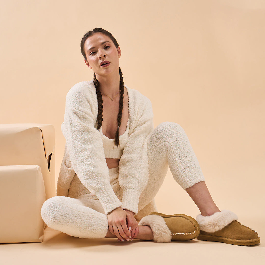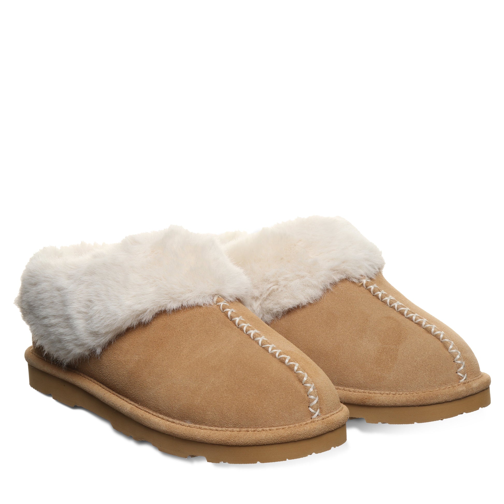 These soft suede slippers are made for indoor wear, delivering warmth and comfort thanks to a plush faux fur lining.
