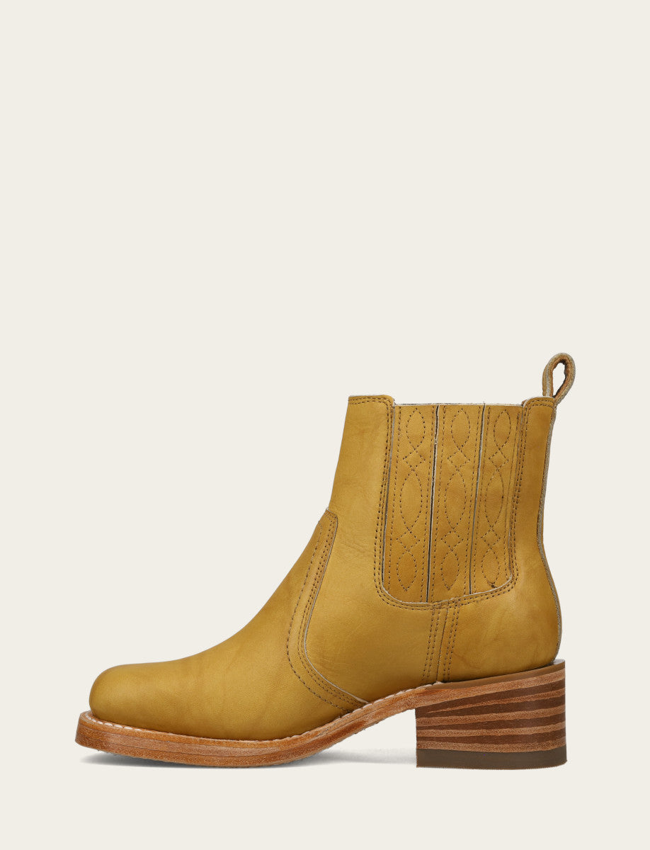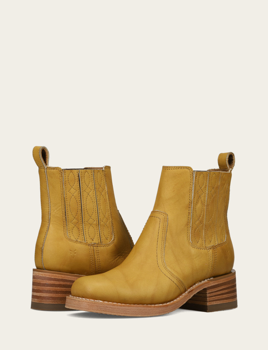 Drawing inspiration from our timeless Campus 14L boot, this Chelsea adaptation delivers the same iconic appeal in a versatile, ankle-high design. Featuring Goodwear welt construction, these booties exude an authentic, rustic charm with a chunky block heel that provides a cushioned base. Whether paired with your favorite flair jeans or a breezy boho maxi dress, embrace the best of both worlds with the Campus Chelsea - effortless style and all-day wearability.
