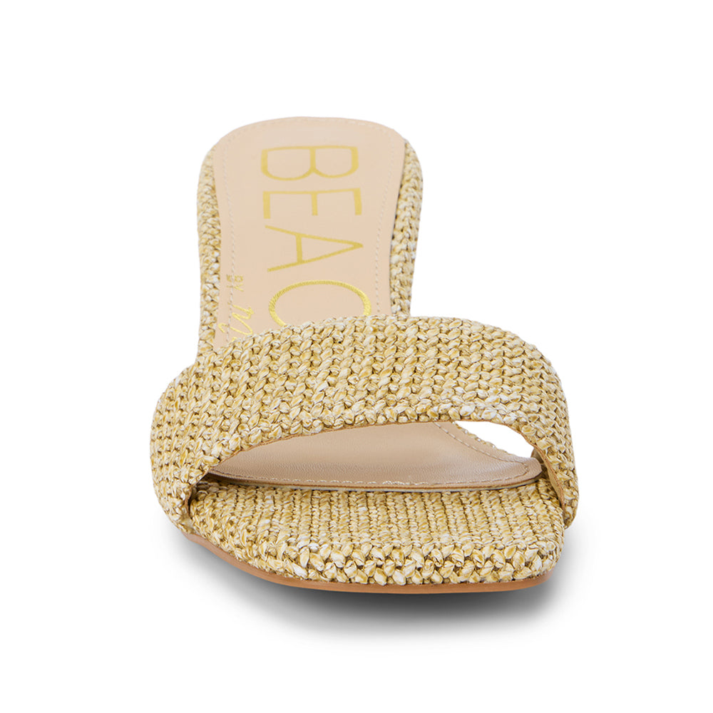Vegan single-band kitten-heel sandal offers a chic option for everyday wear.