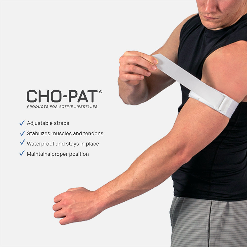 The Cho-Pat Upper Arm Strap with Dynamic Diffusion™ prevents the strain on tendons and muscles in the upper arm.