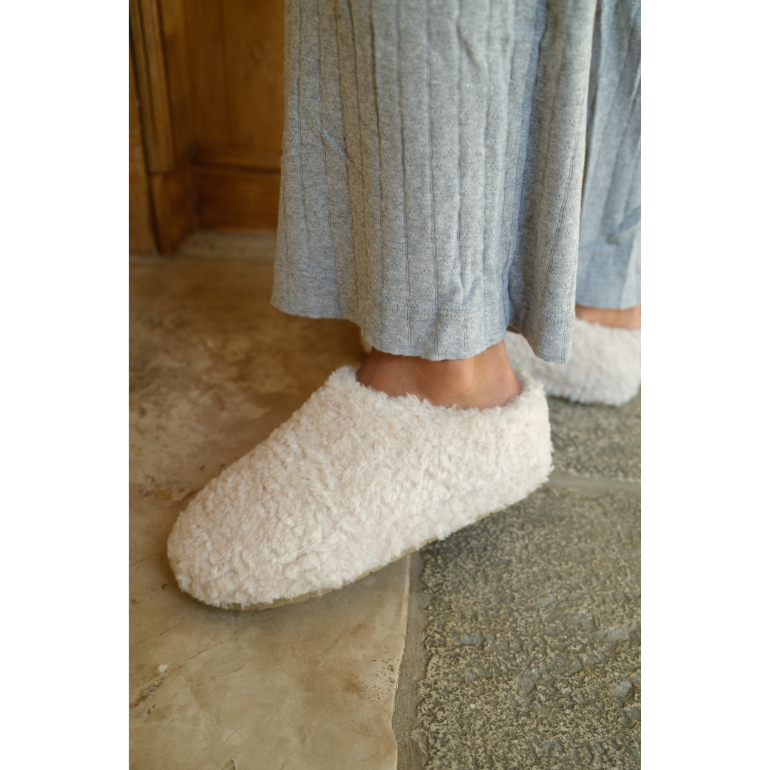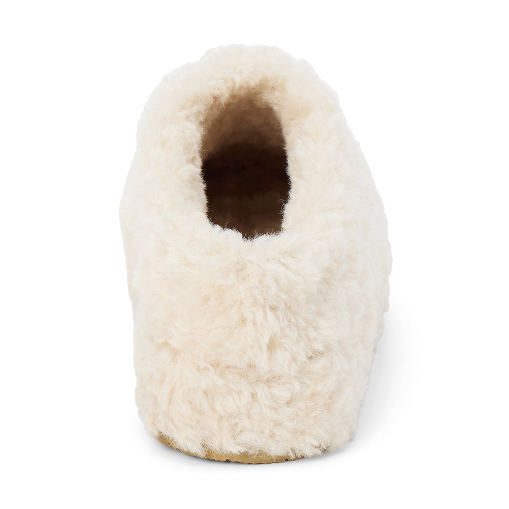 Slip-on mule crafted with vegan faux shearling for a cozy, easy-wear option.