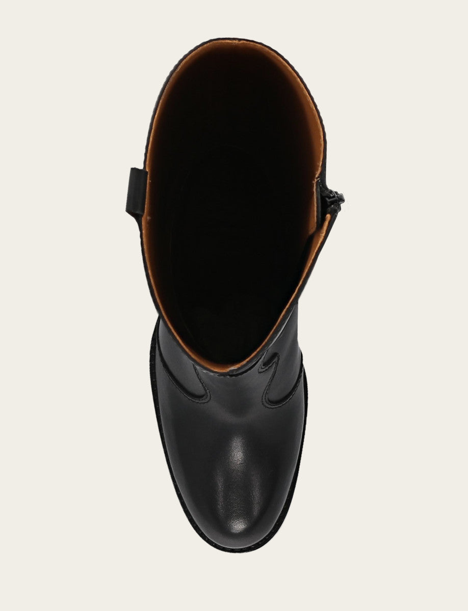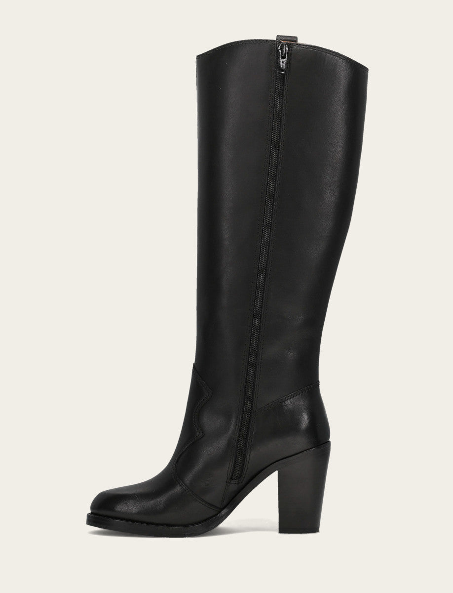 Designed for effortless wear, this knee-high riding boot features a flexible rubber outsole for immediate comfort. Crafted from durable premium materials, it showcases a round toe and chunky heel for modern versatility. Pair with casual denim or dresses for everyday appeal.