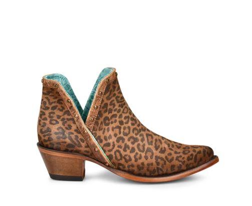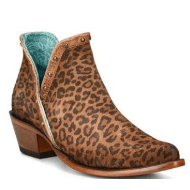 Corral Women's Leopard Print with Stud Brown Ankle Booties Z2003