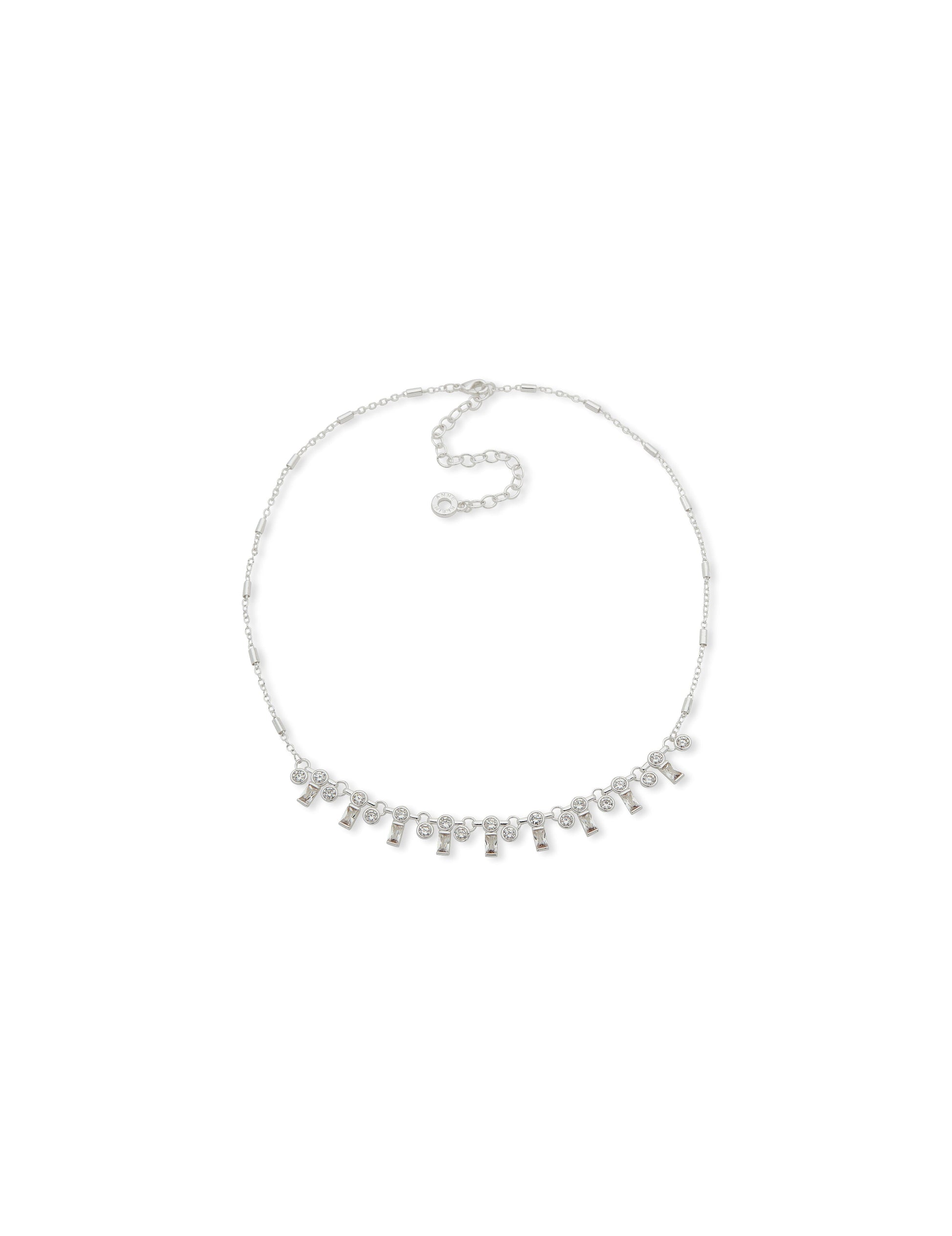 Add a touch of sparkle to everyday style with this CZ Frontal Necklace from the Orchid collection. It showcases alternating bezel-set and emerald-cut CZ stones with an adjustable closure for a comfortable fit.