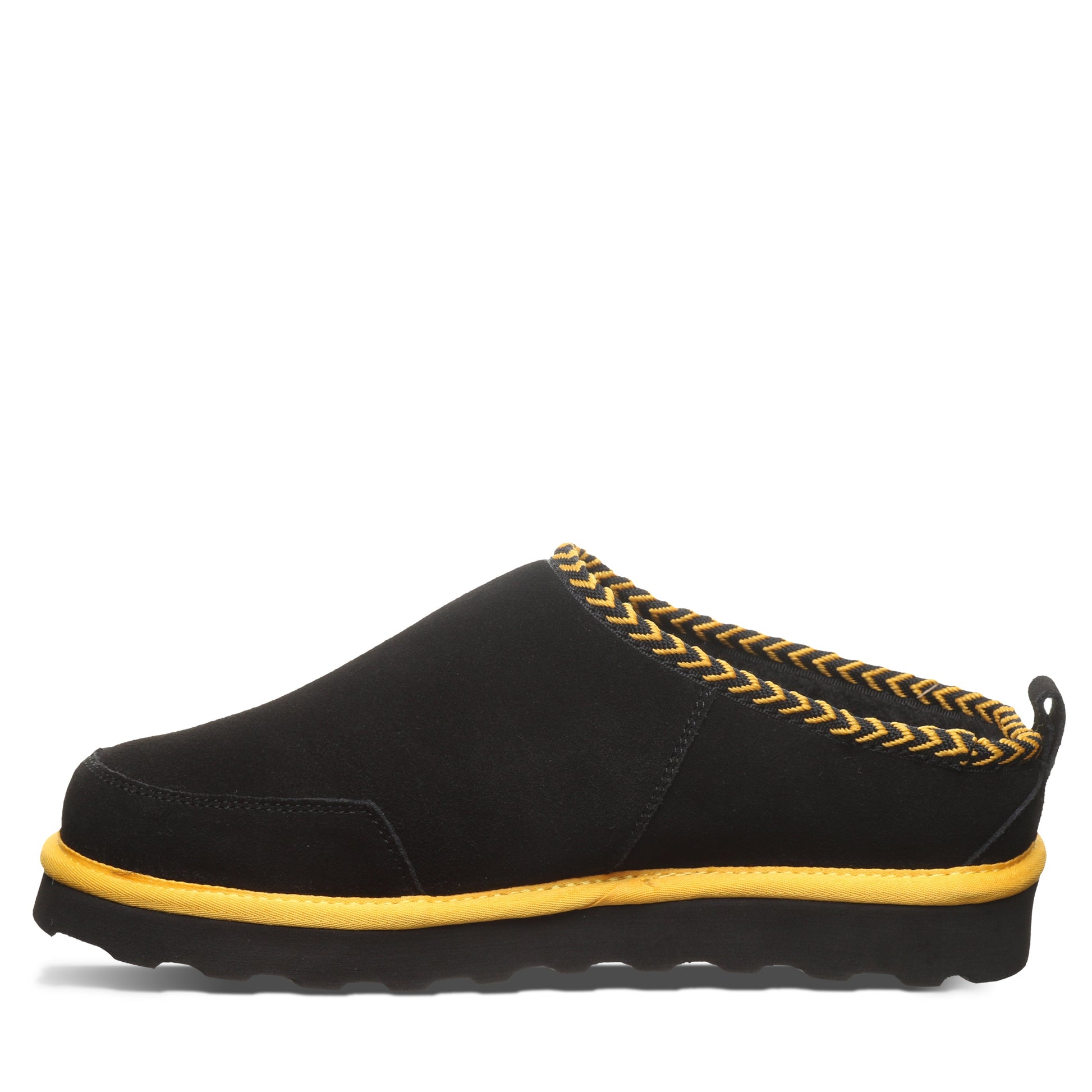 The Damian Black/Gold Slipper for men blends game-day flair with everyday comfort, featuring a genuine suede upper in bold team hues and a plush wool blend fur lining to keep feet warm year-round. The cushioned footbed delivers all-day comfort, and the sturdy indoor/outdoor sole is ready for quick trips outside.