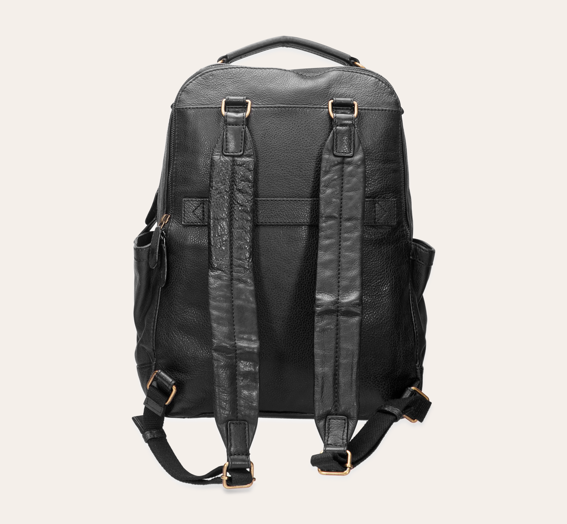 A structured backpack designed to organize daily essentials while protecting a laptop during transport.