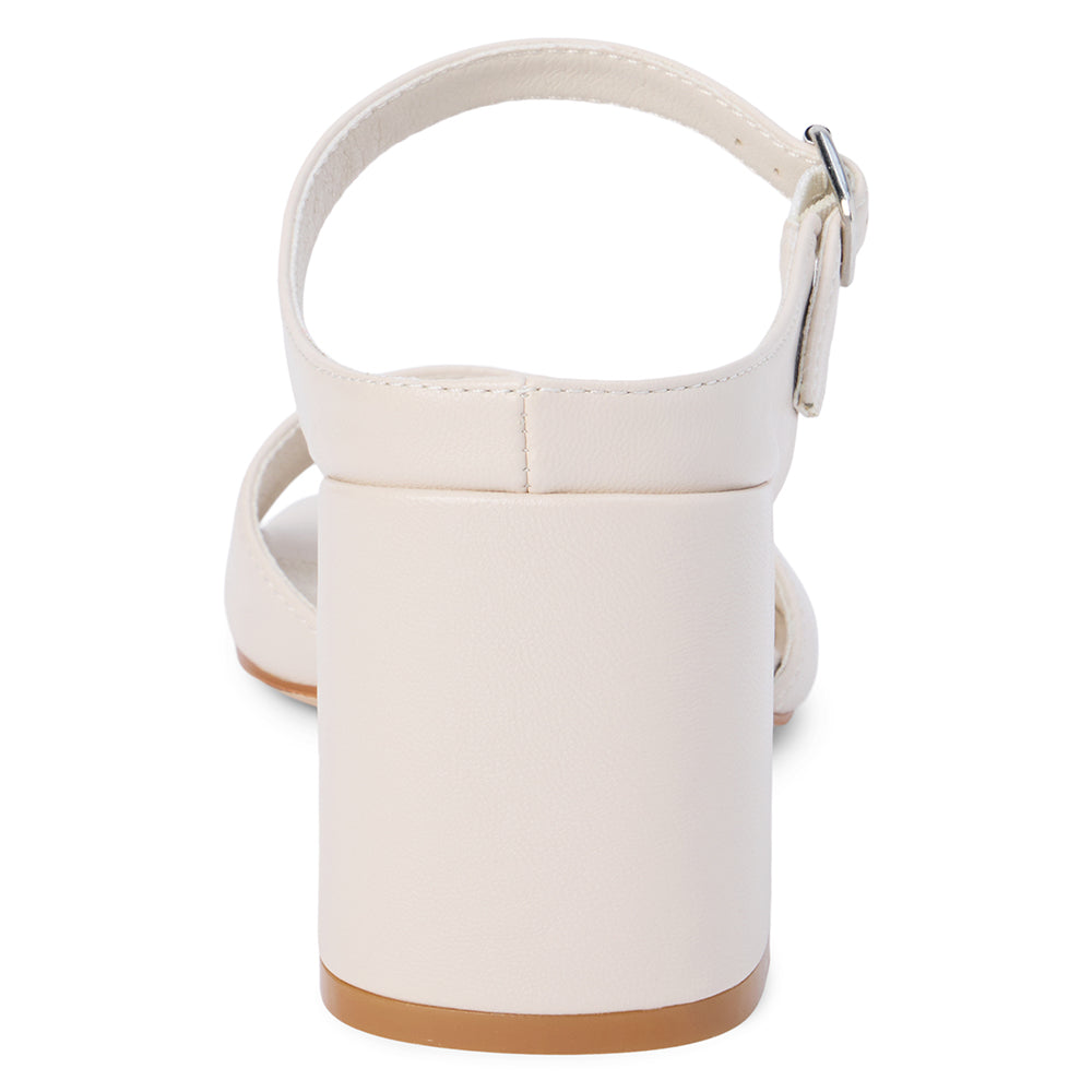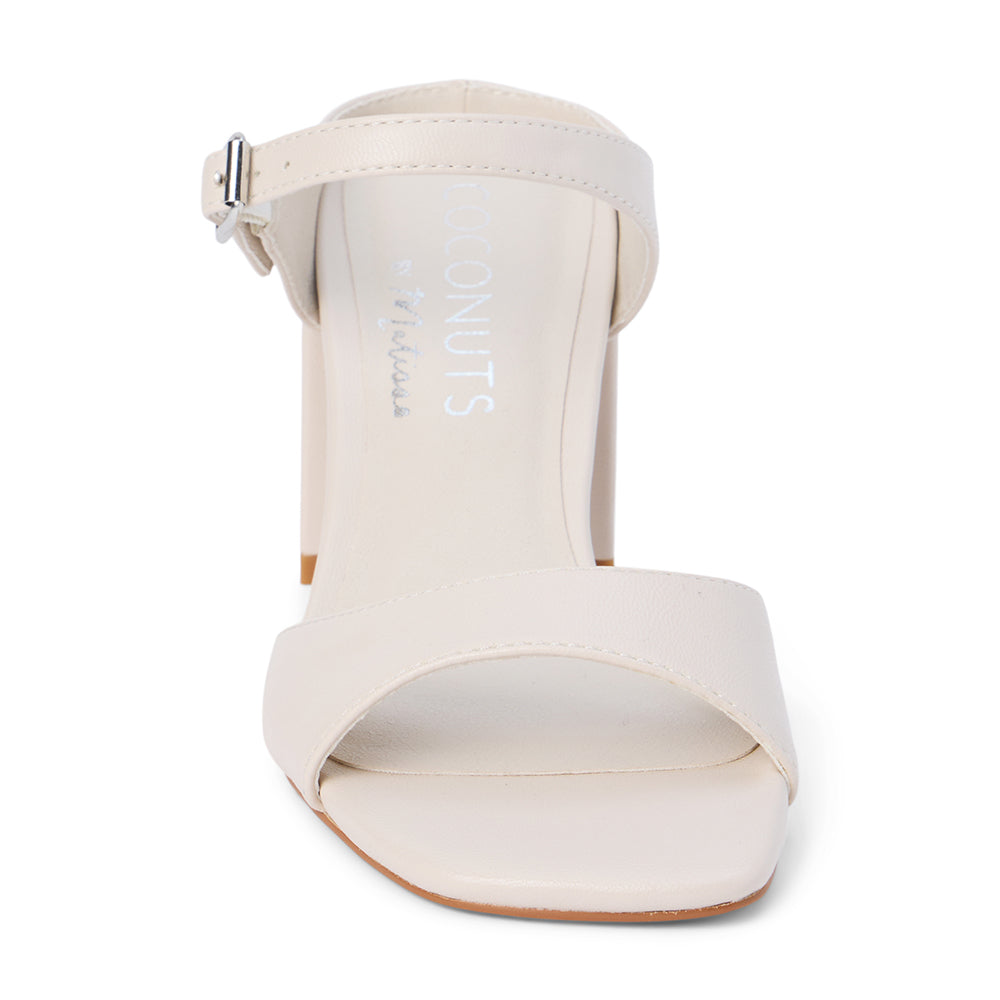 Vegan Donnie Heeled Sandal offers a refined, cruelty-free silhouette with a dainty buckle detail.
