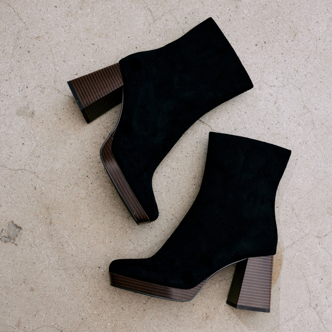 Duke Platform Boot features a platform silhouette with a squared toe.