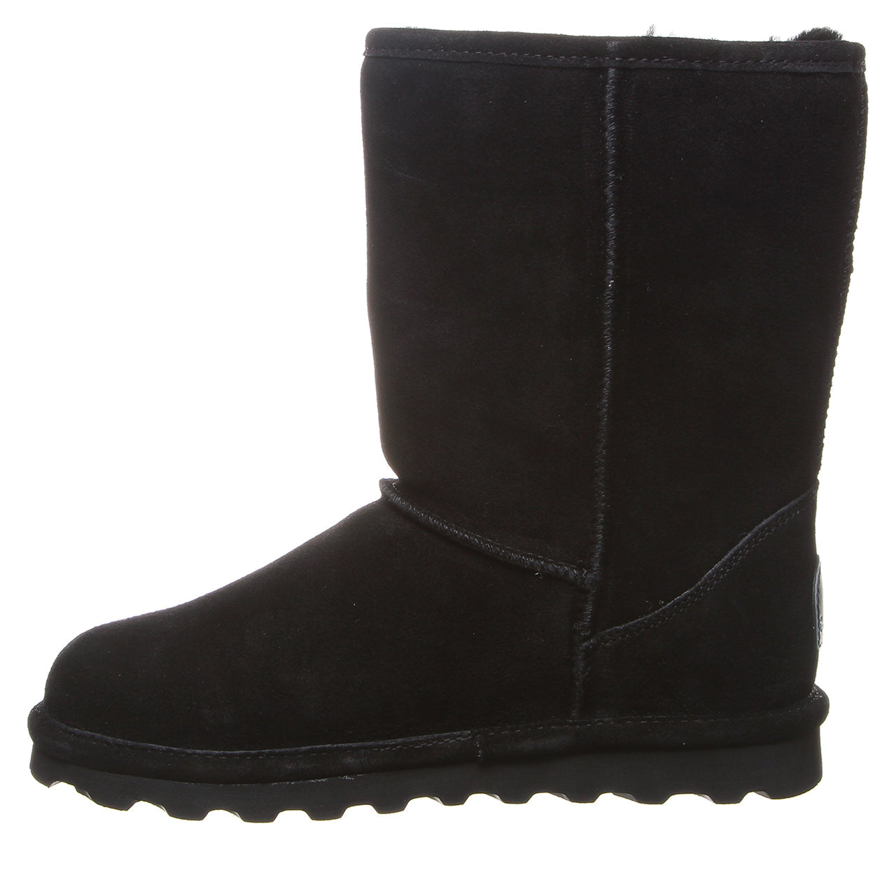 The Elle Short Wide Black boot is a wide-fit suede boot designed for casual daily wear, featuring a suede upper and BearCoat Rain & Stain Repellent for protection from the elements.