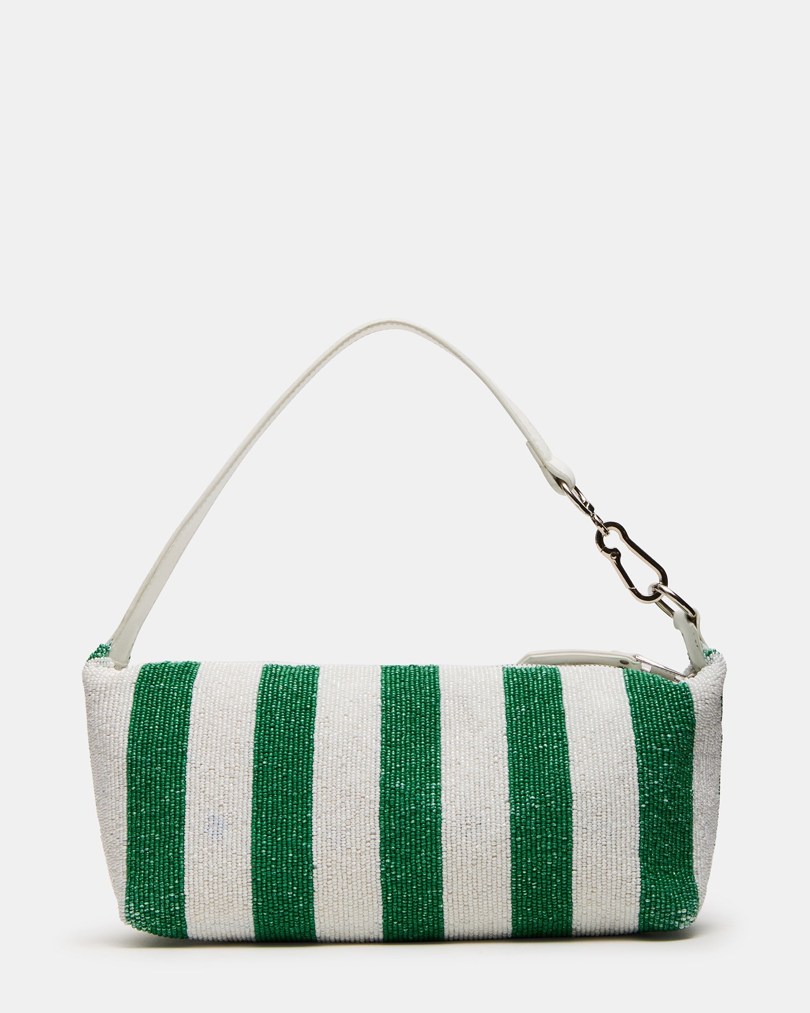 The EMERSYN Beaded Bag pairs detailed beadwork with a sleek silhouette, highlighted by a logo bead woven into the design.