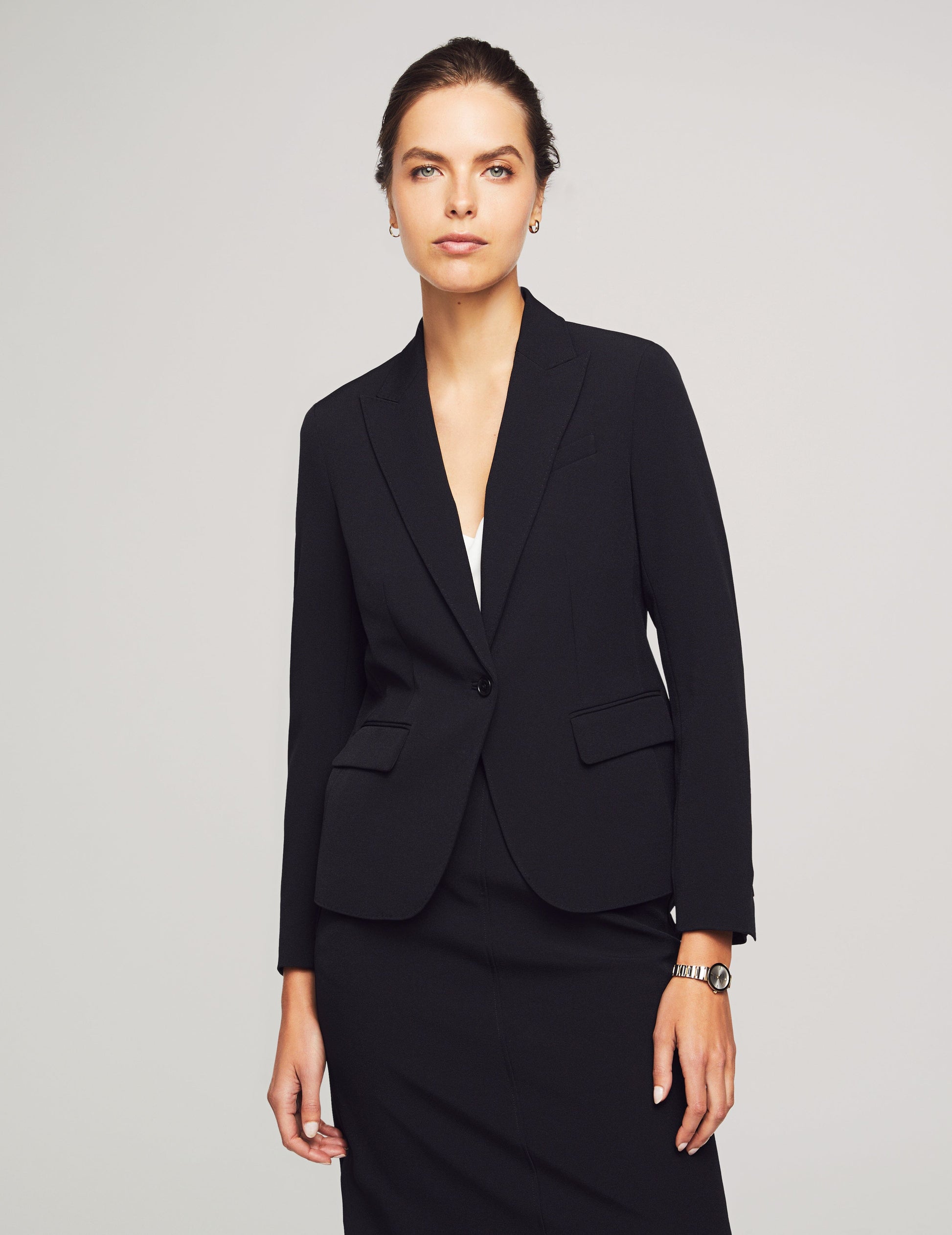 Polished two-piece suit designed for a professional wardrobe with practical pockets and a classic silhouette.