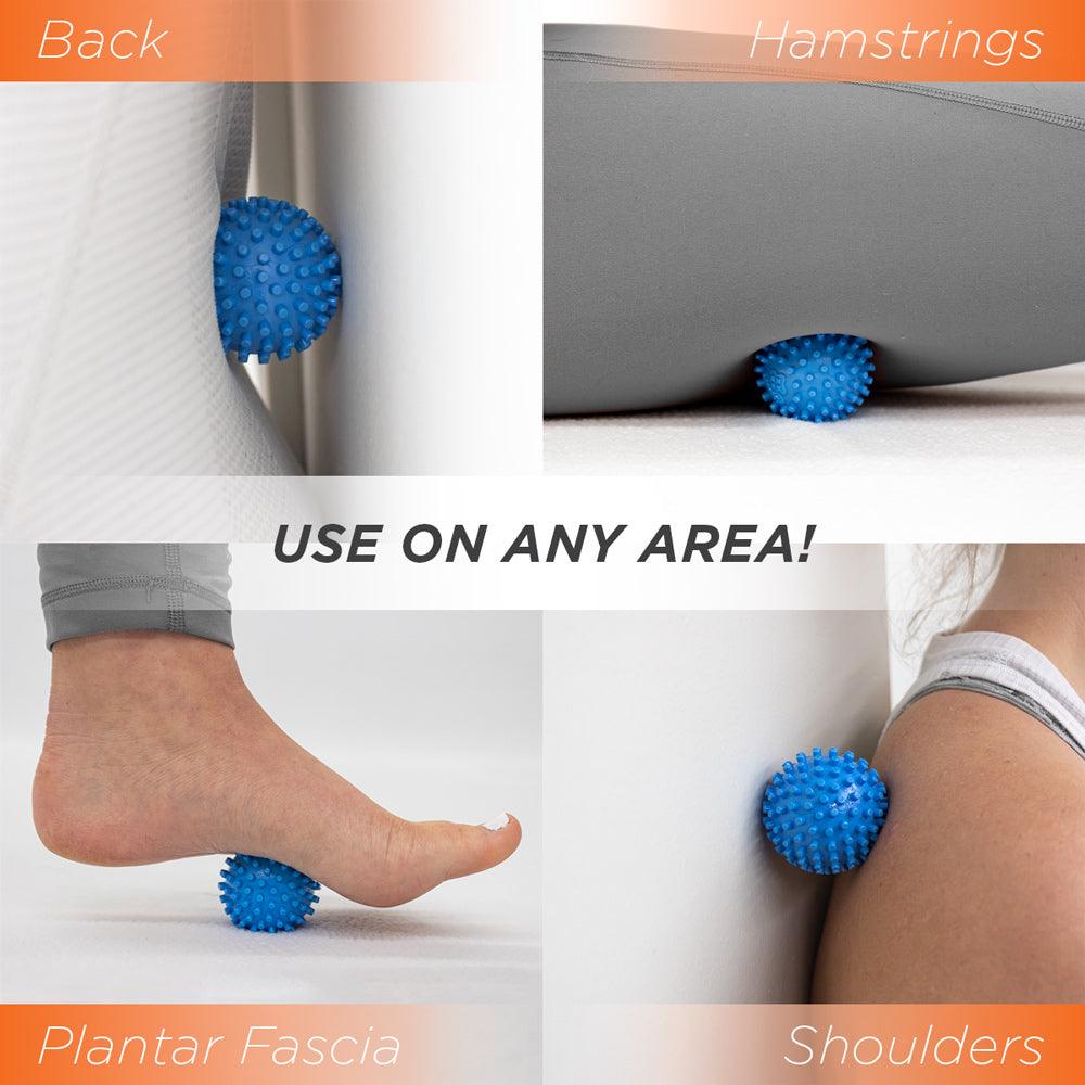 The ProStretch Footy massage ball features tiny knobs that connect deeply with the plantar fascia to provide relief for both, muscle tightness, and soreness.