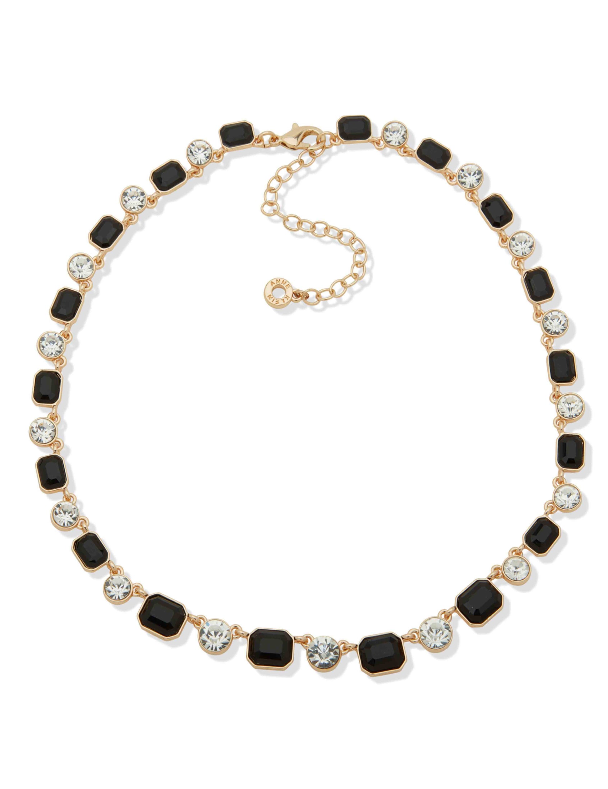 A bold necklace that blends jet-black and crystal tones in an alternating bezel-set design to elevate any look.