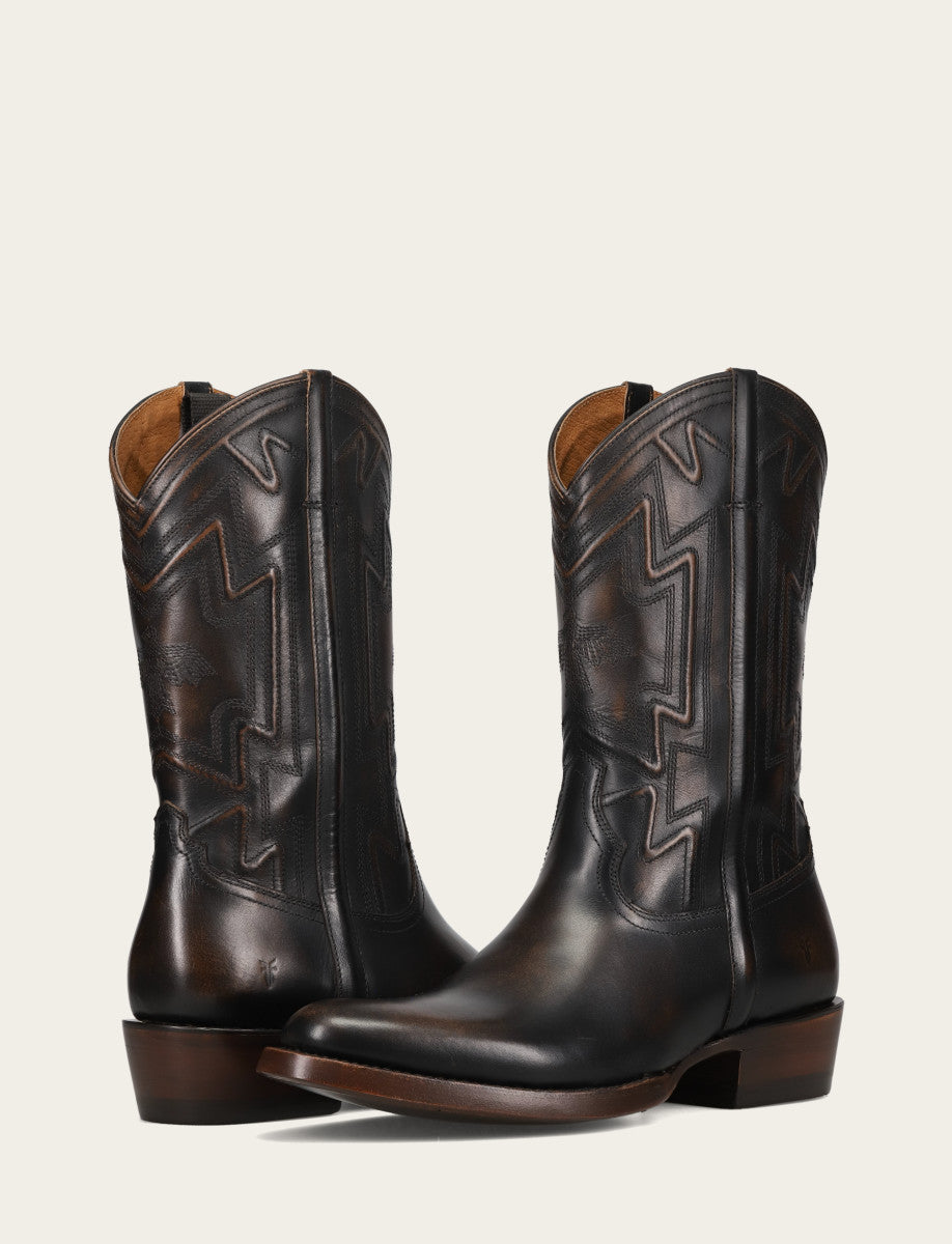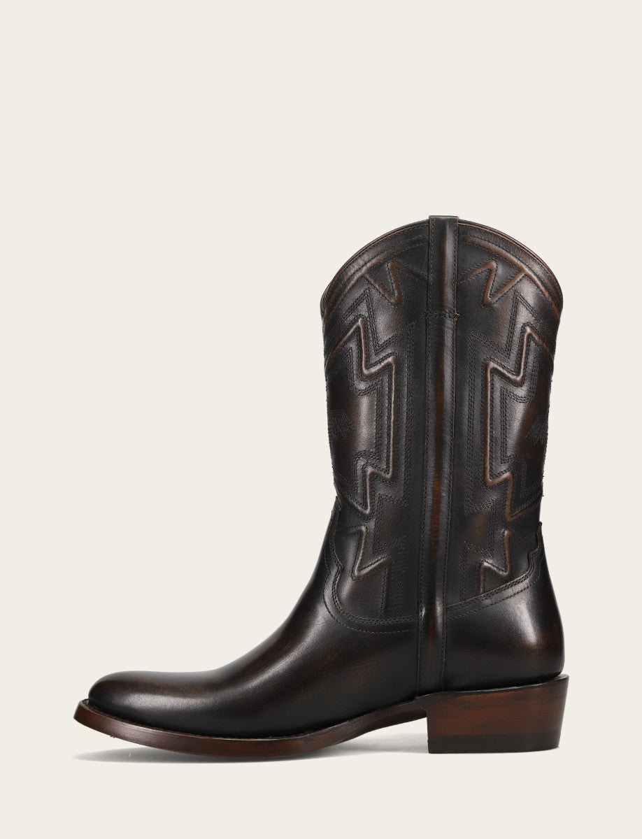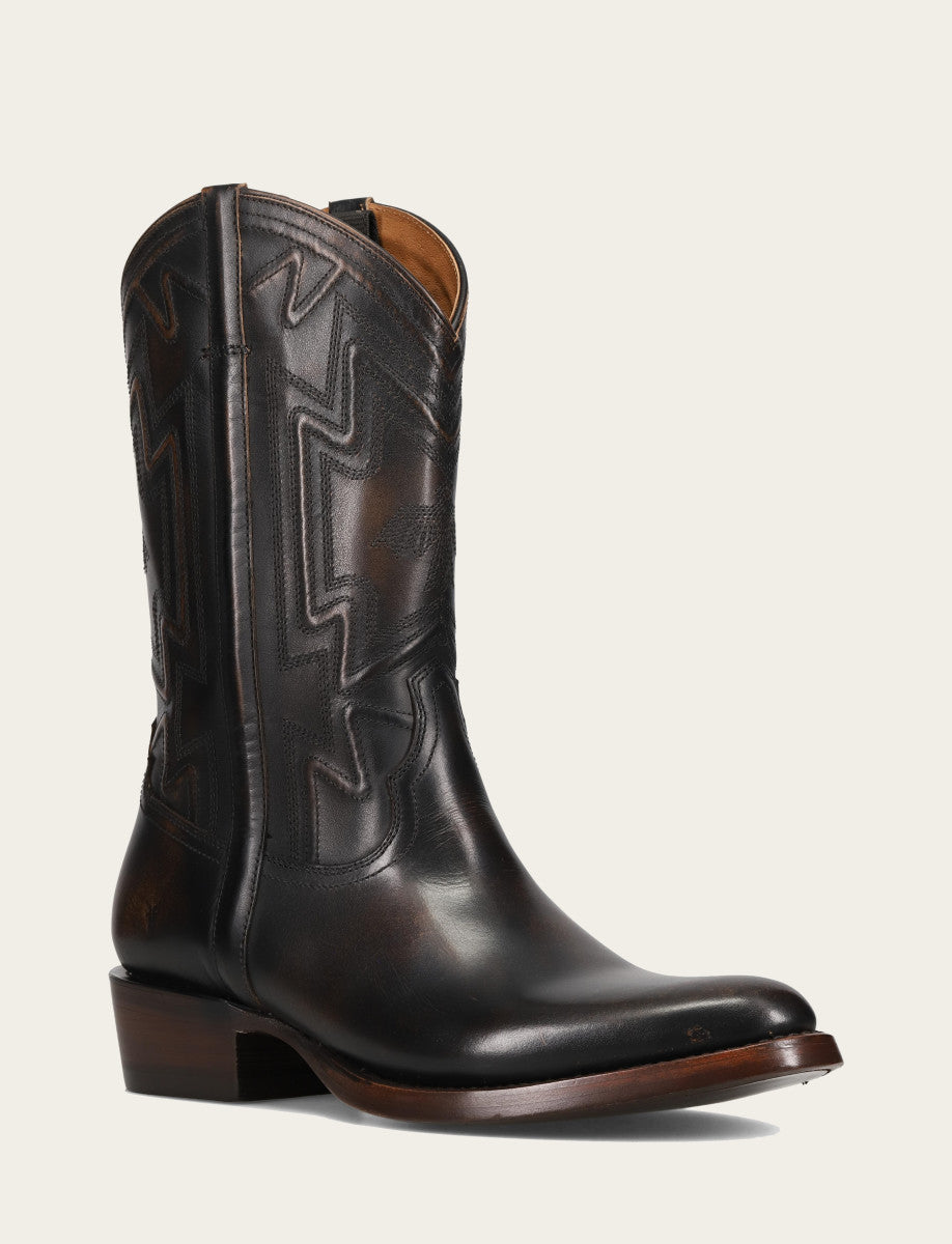 These boots pair a bold geometric silhouette with premium materials for a statement-making look.
