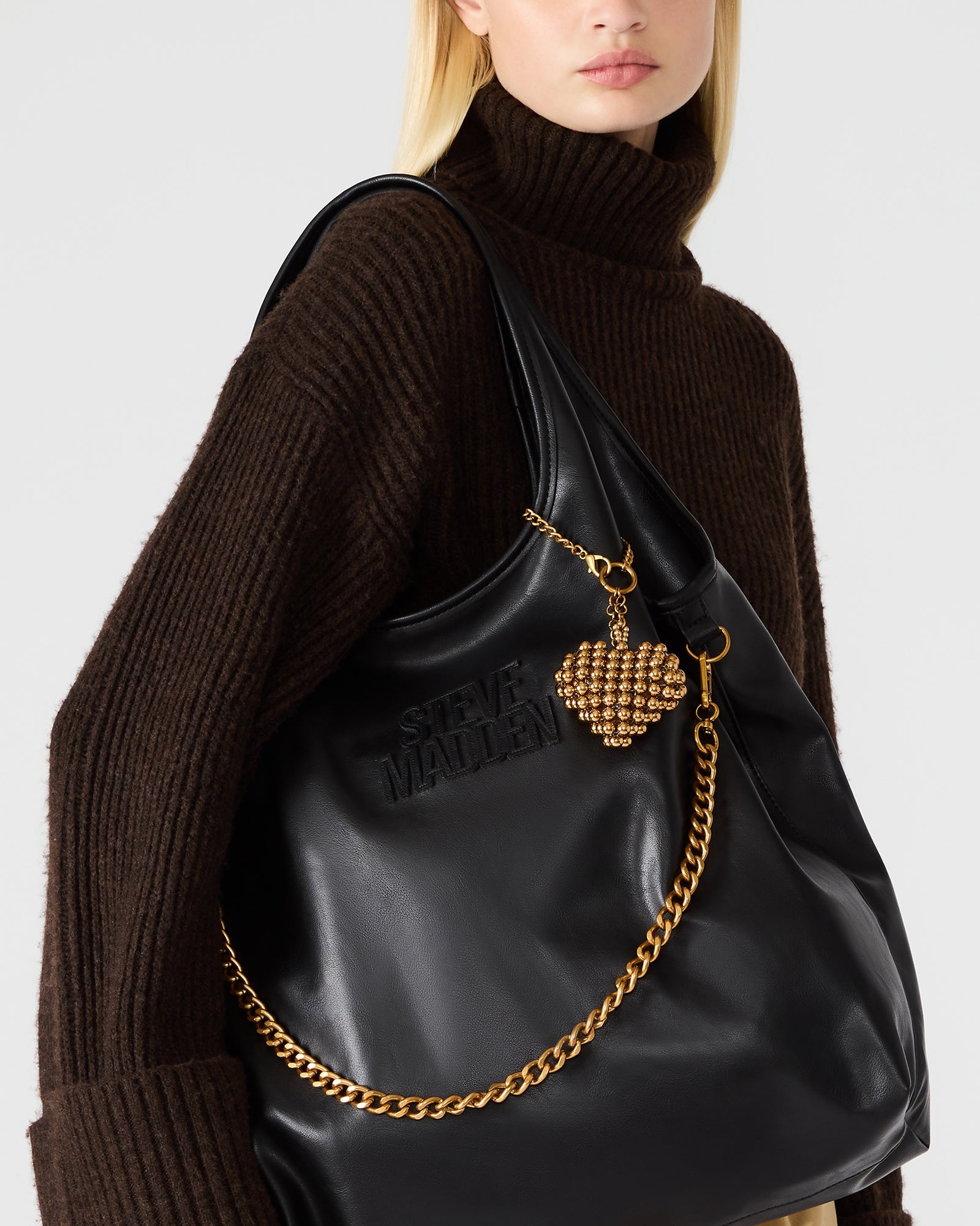 Add a touch of sophistication to your bag with a heart-shaped charm designed to elevate daily accessories. It combines a curb chain, a jewelry-like closure, a split key ring, and a linked logo tag for a refined finish.