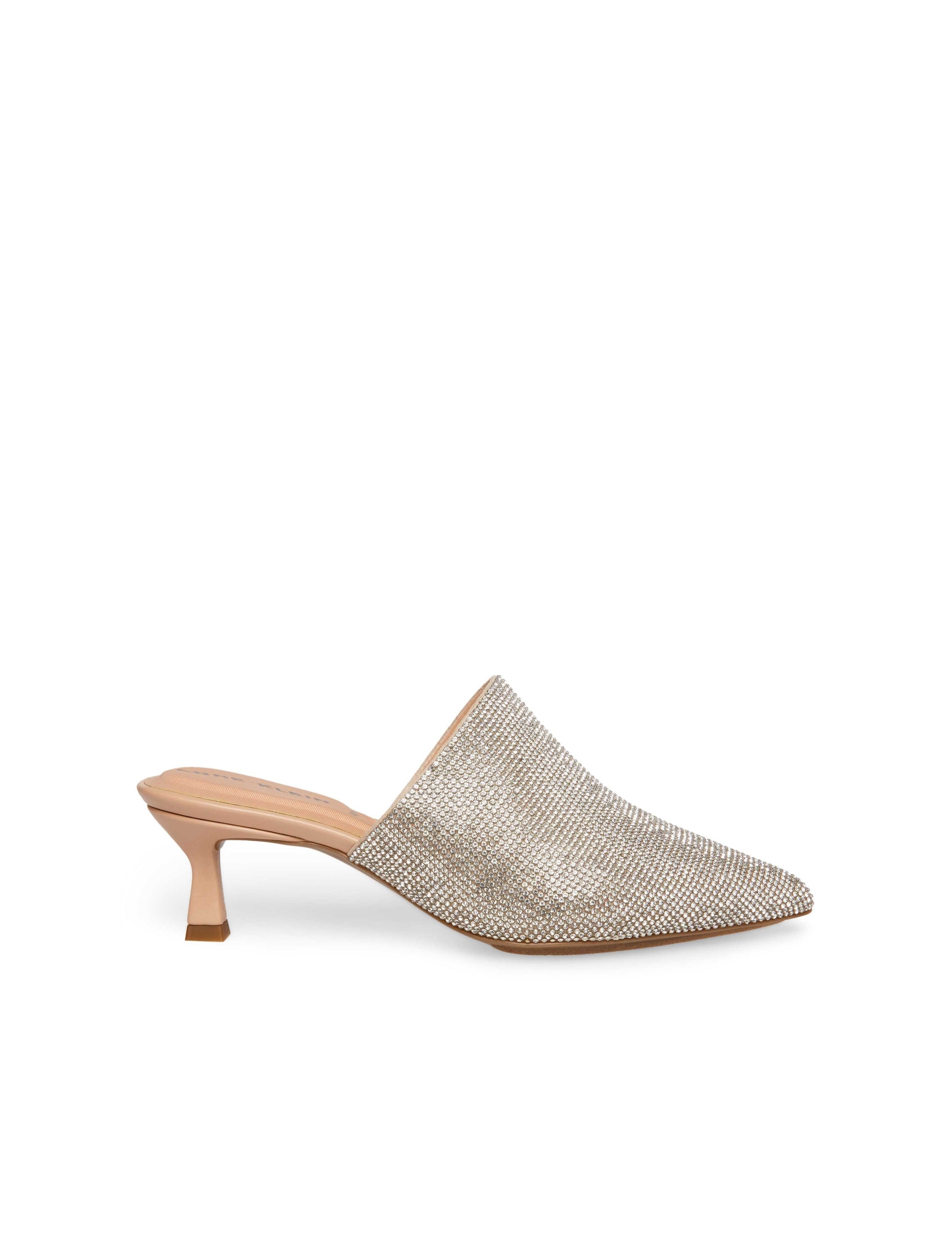 A staple for professional and casual looks, the Impress Crystal Kitten Mule pairs a sleek slip-on design with crystal detailing for refined everyday style.