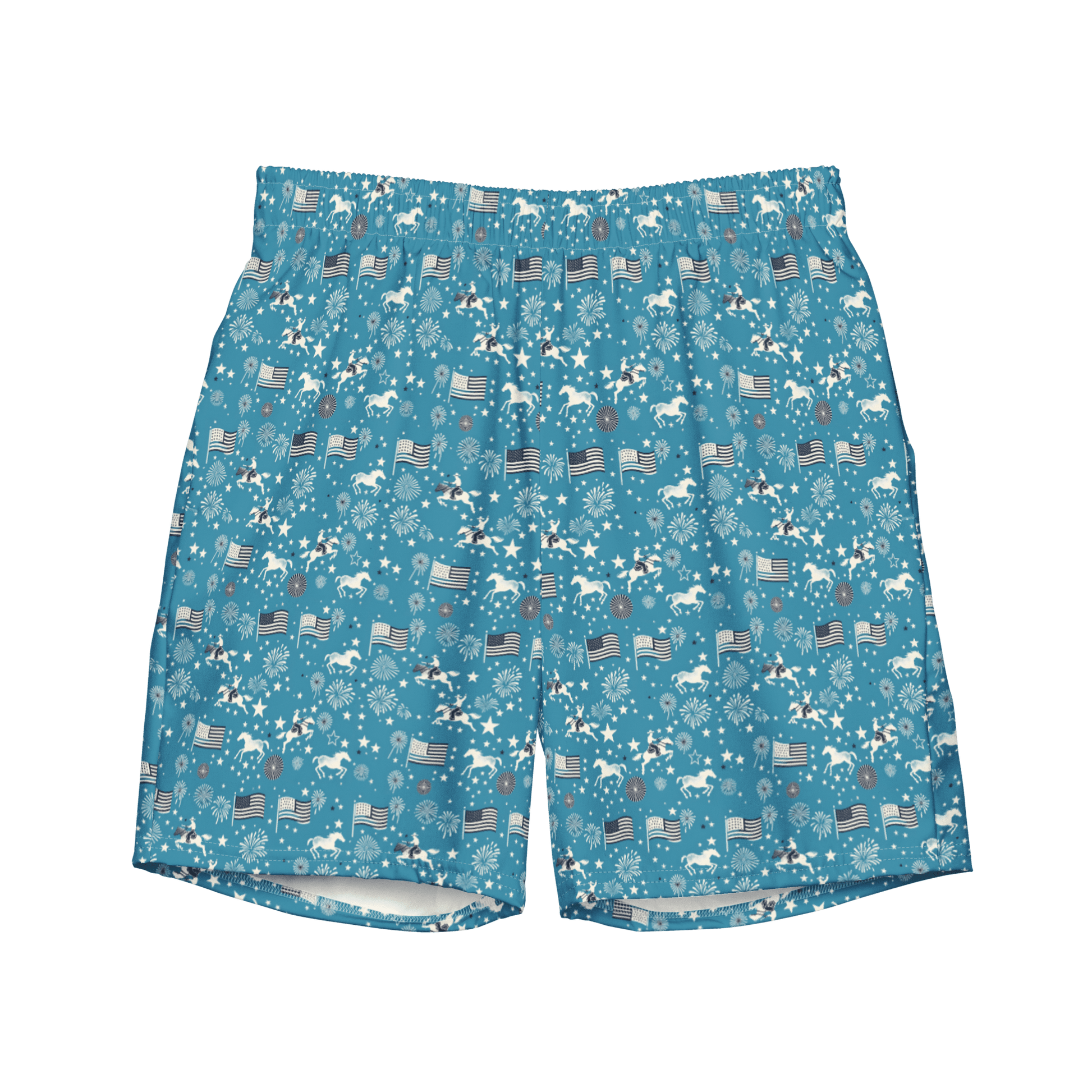 Independence Blues: Fourth of July Cowboy Swim Trunks