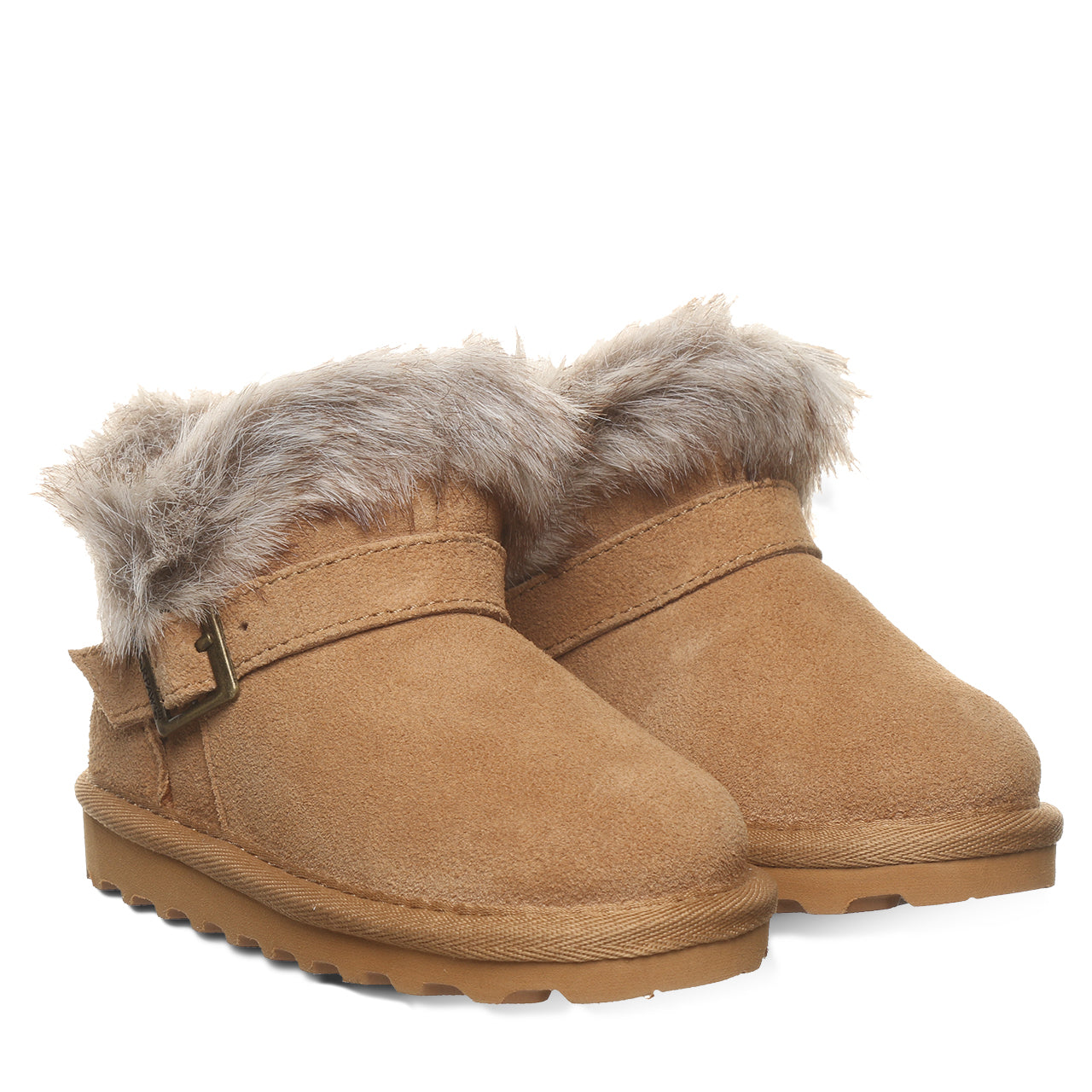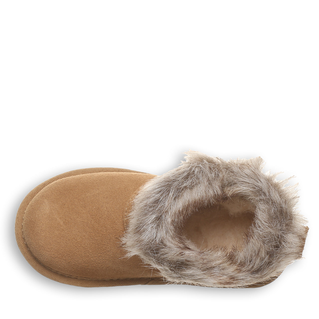 Materials: suede upper; plush wool-blend lining; soft faux fur collar.