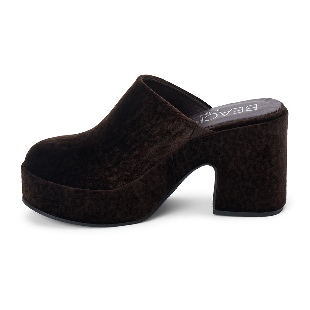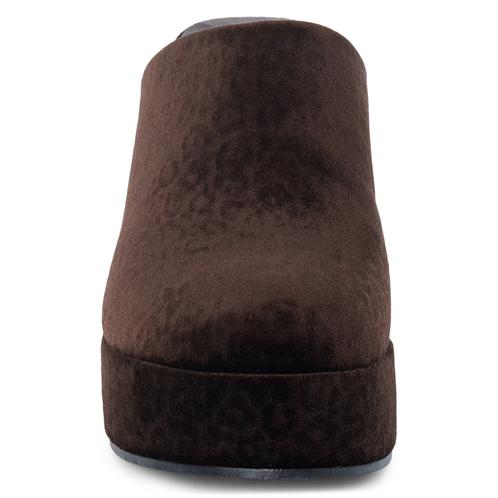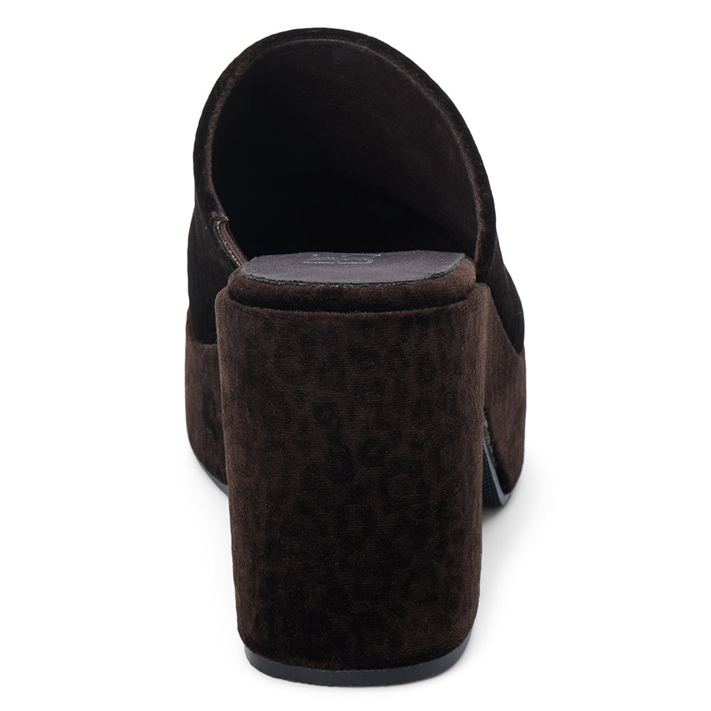 Slip into a vegan leopard-print mule with a sculpted platform for bold style.