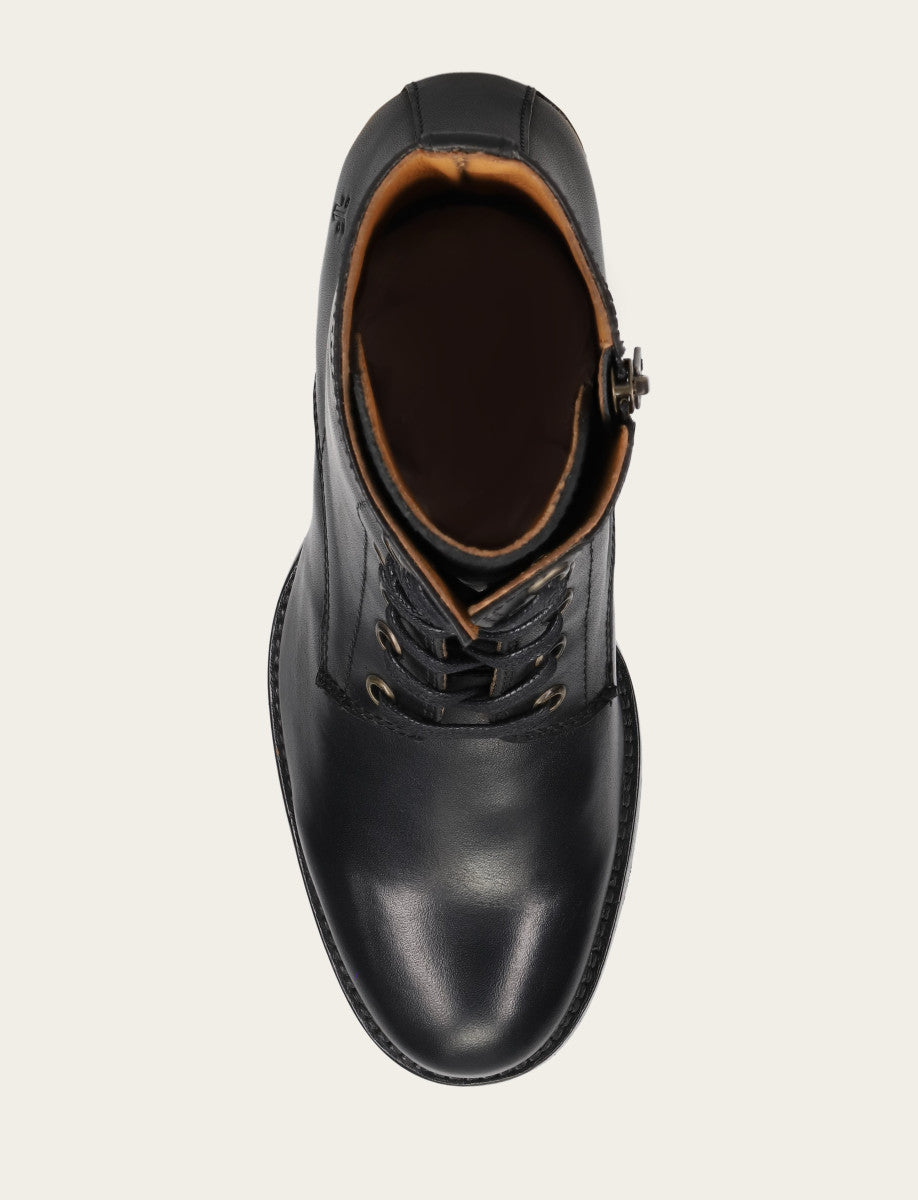 Modern lace-up booties blend rugged and refined textures for a versatile, well-worn vibe.