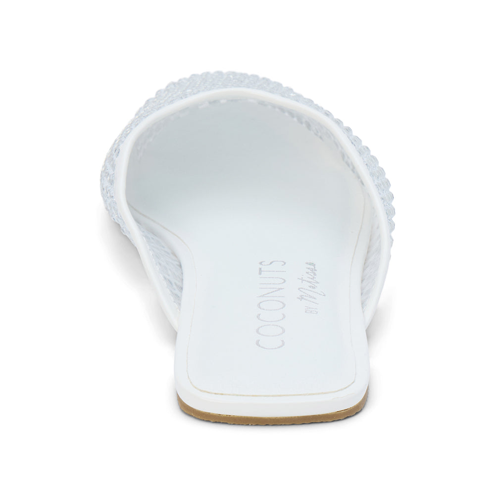 Slip-on mule featuring vegan mesh for easy wear and a touch of sparkle.