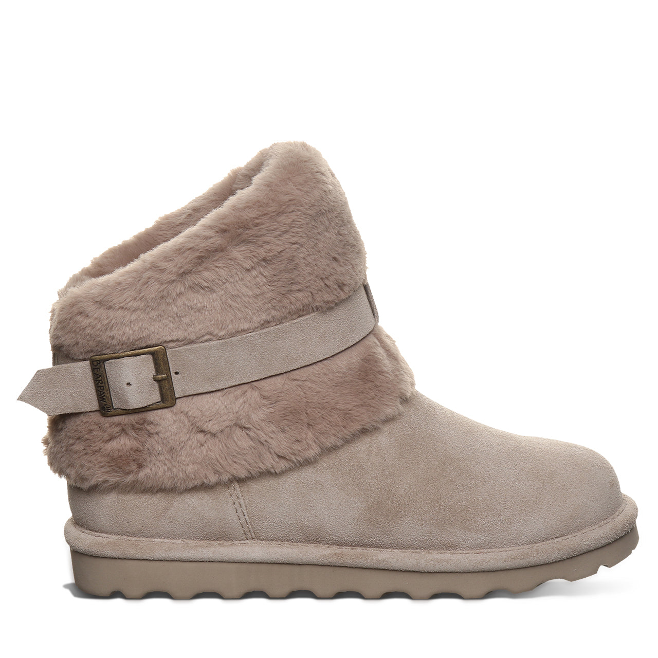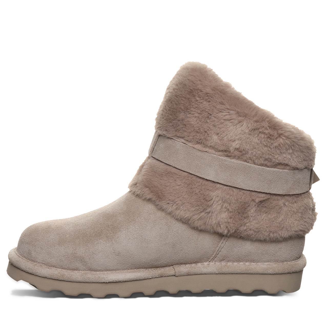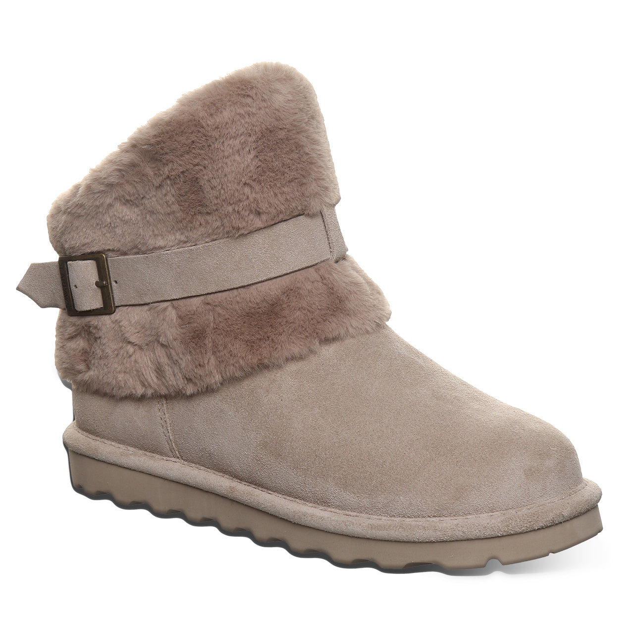Elevate your cold-weather wardrobe with the Karmina Mushroom boot, crafted in rich suede and trimmed with a plush faux fur collar. A polished buckle detail adds a subtle fashion note while the cushioned sole supports everyday comfort.