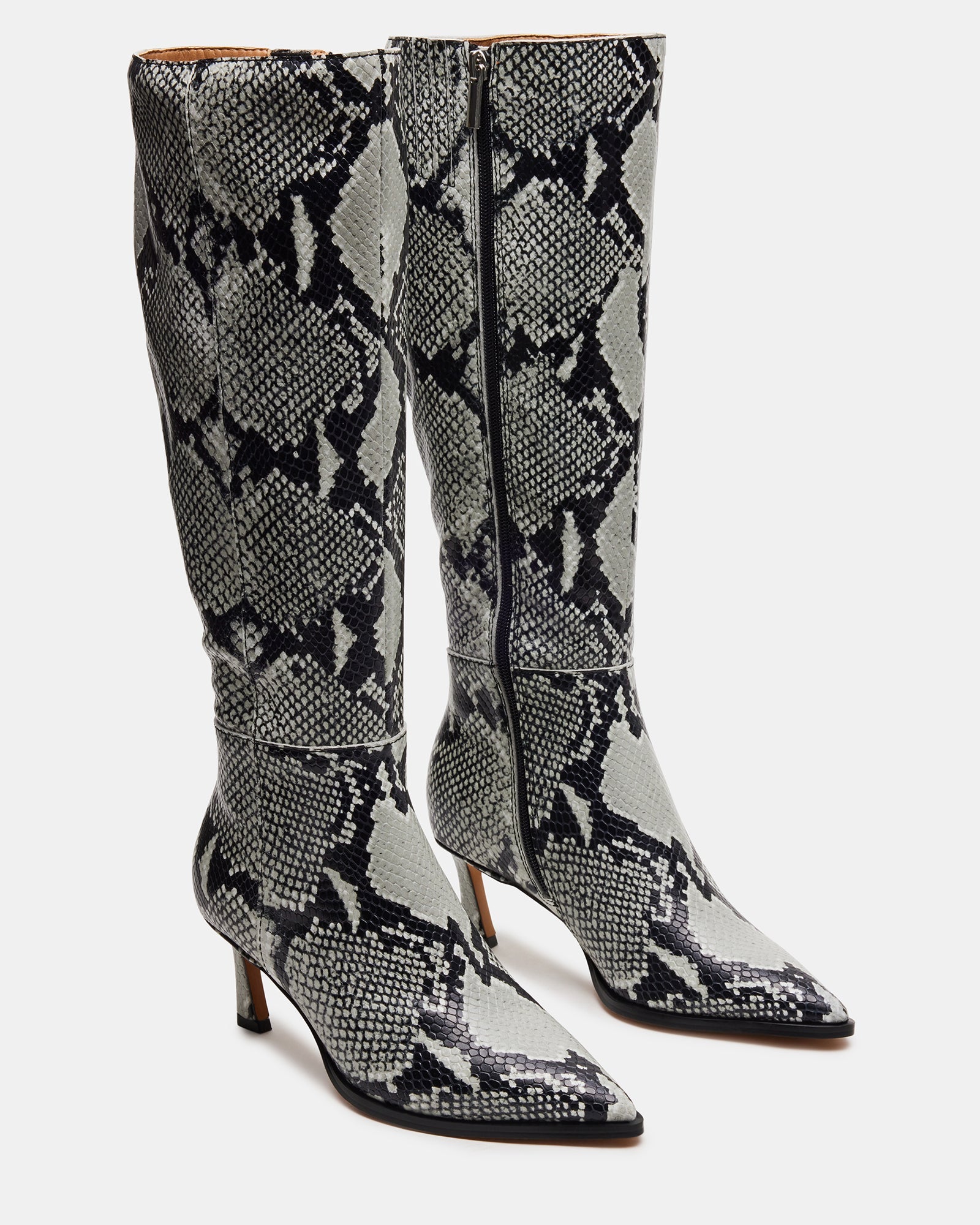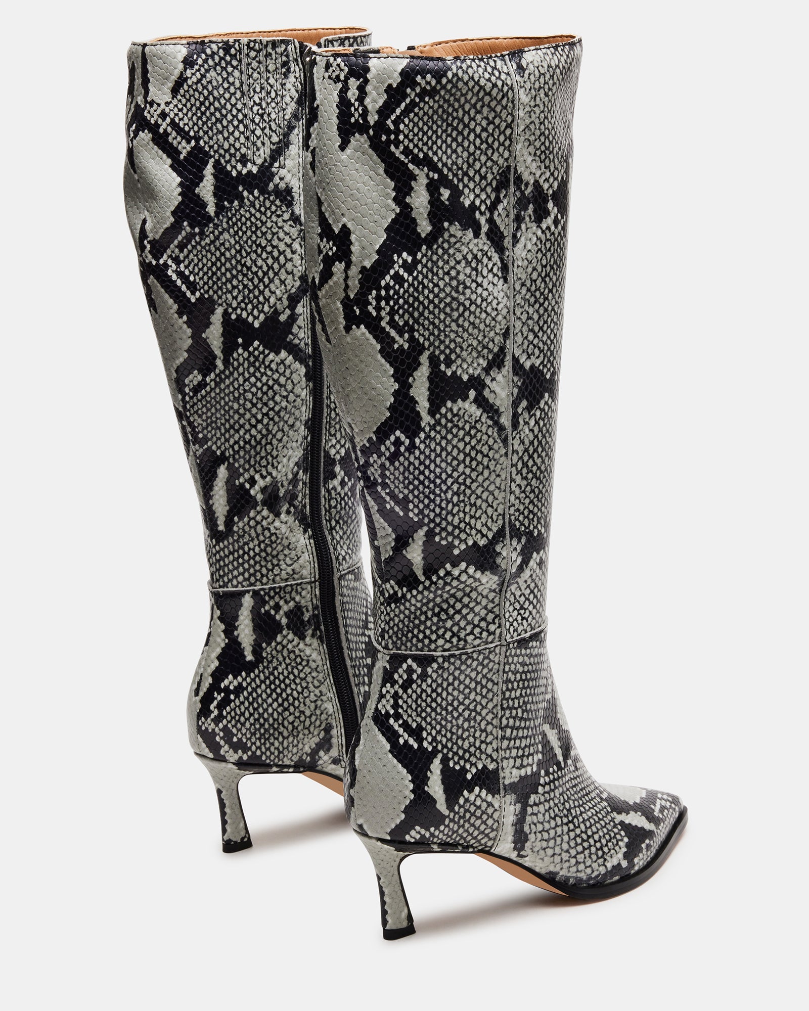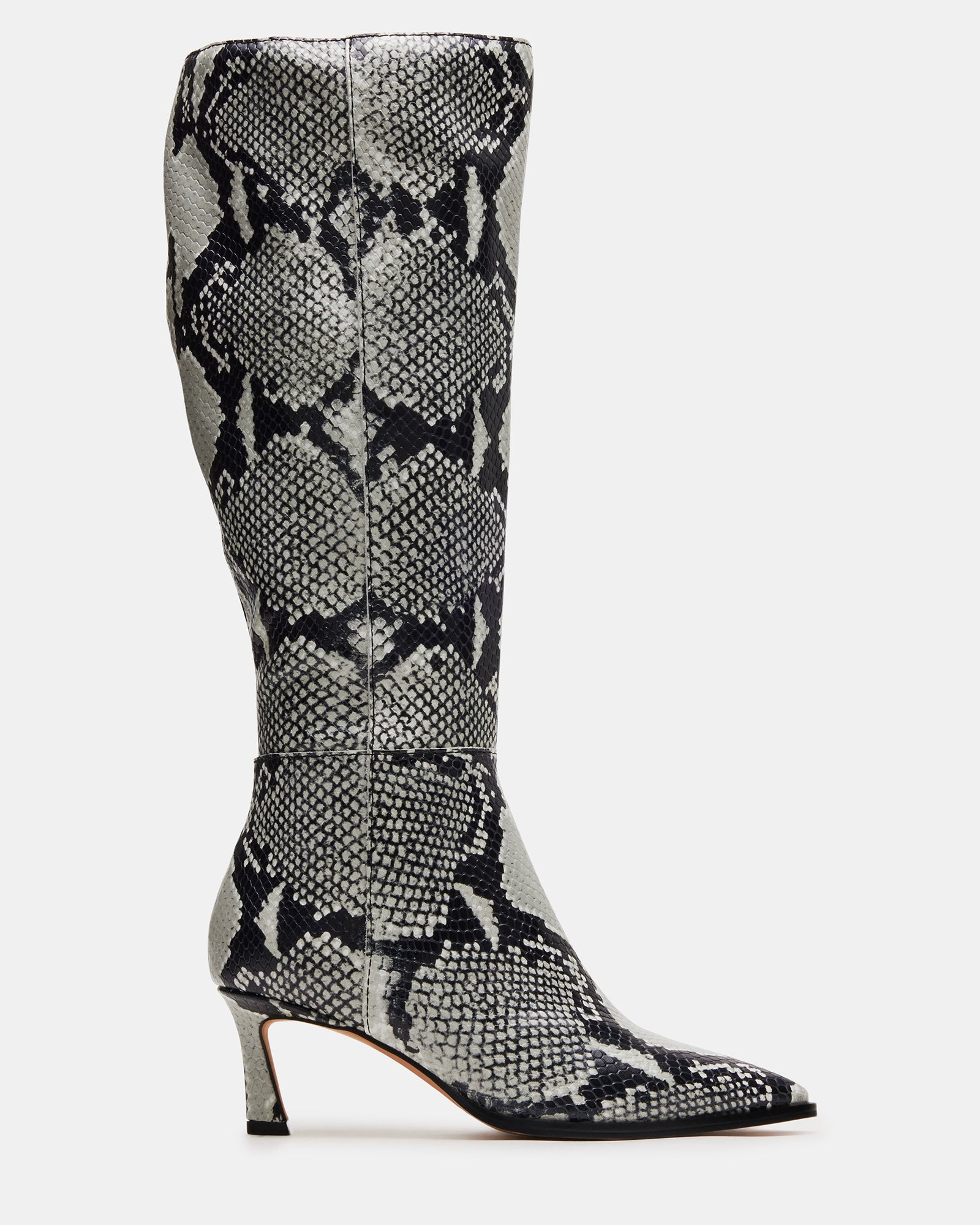 LUCID SNAKE delivers a knee-high silhouette that pairs a pointed toe with a kitten heel for a refined, versatile appearance.
