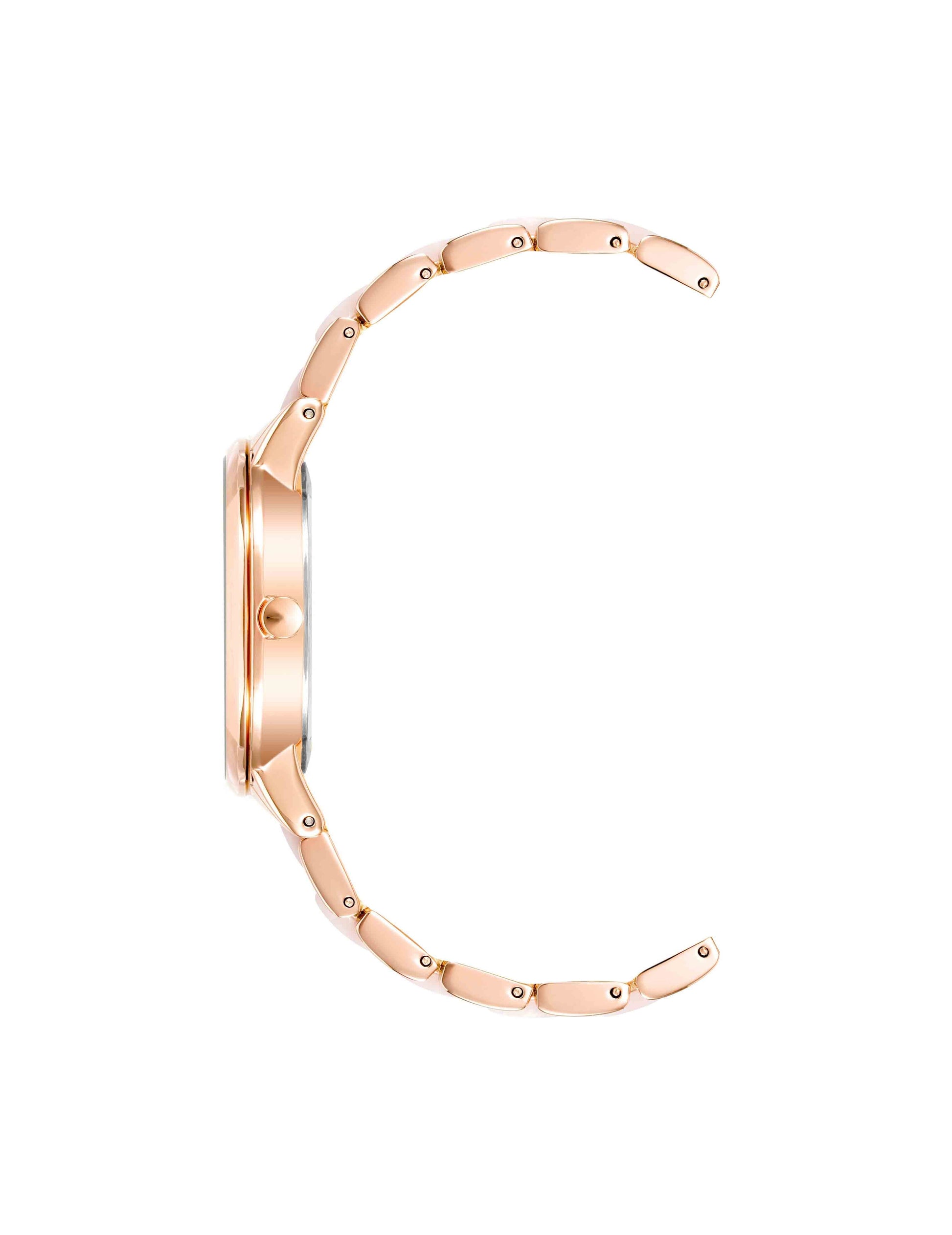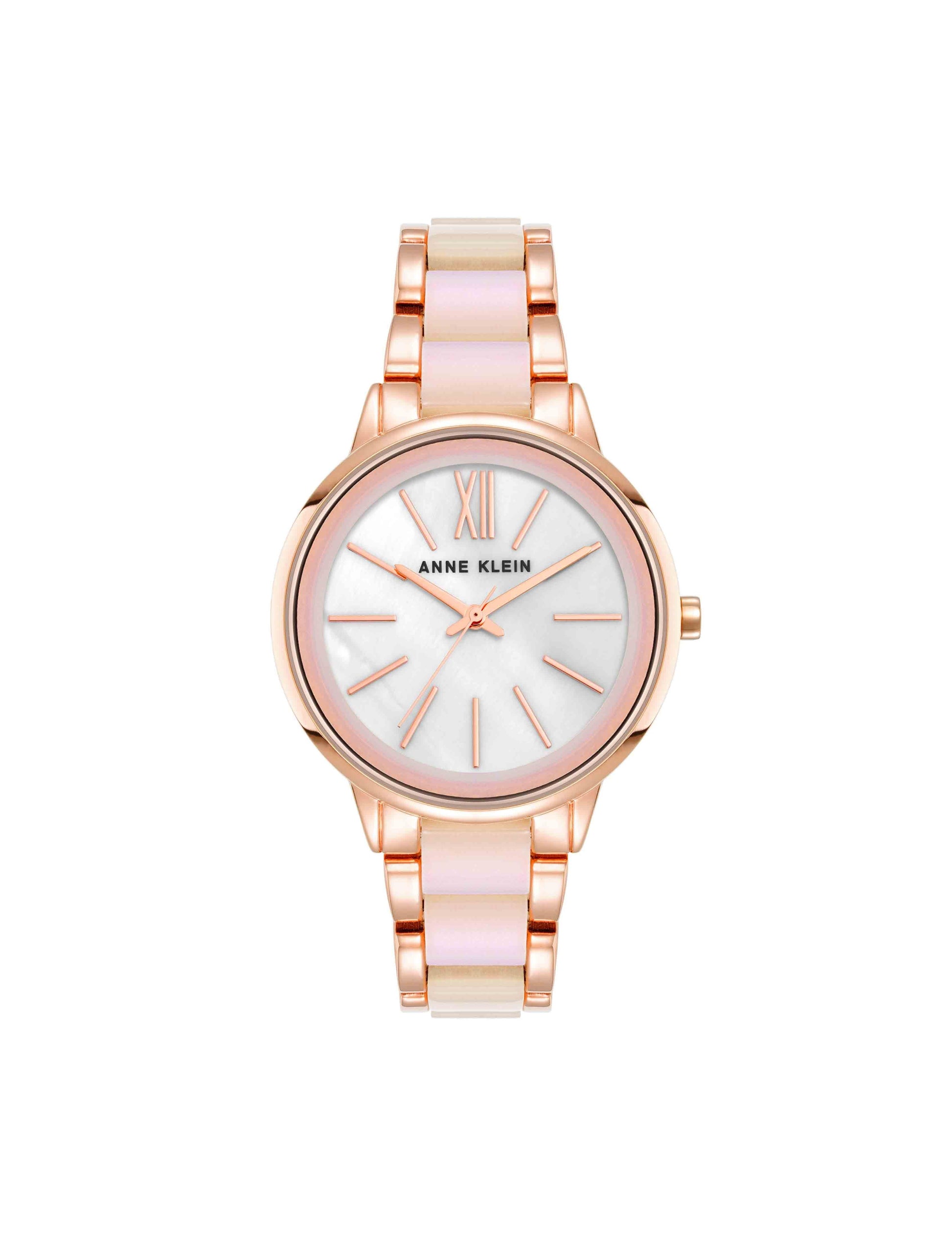 A refined timepiece featuring a mother-of-pearl dial and acetate center links, delivering a versatile look for any occasion.