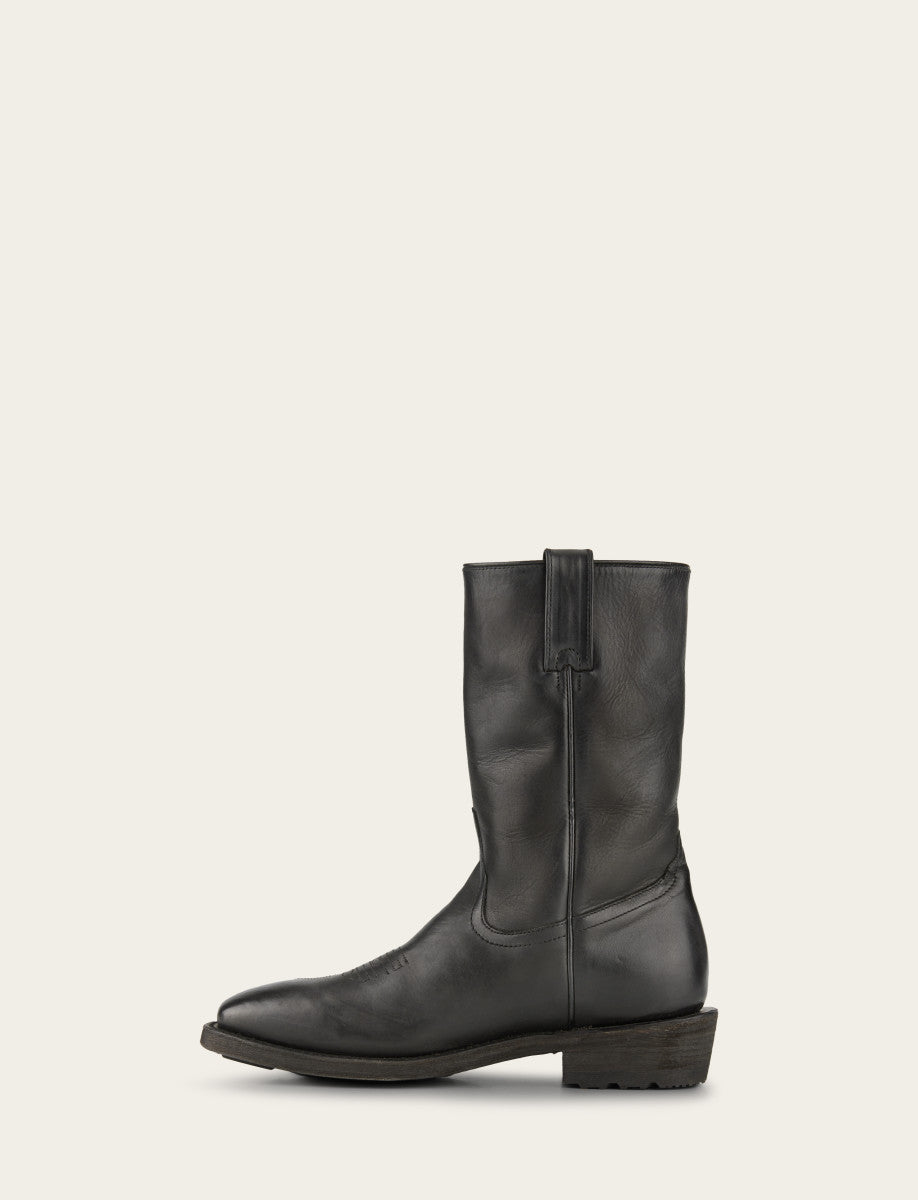 - Vintage leather construction delivers a versatile look that pairs with cuffed jeans or rugged pants.