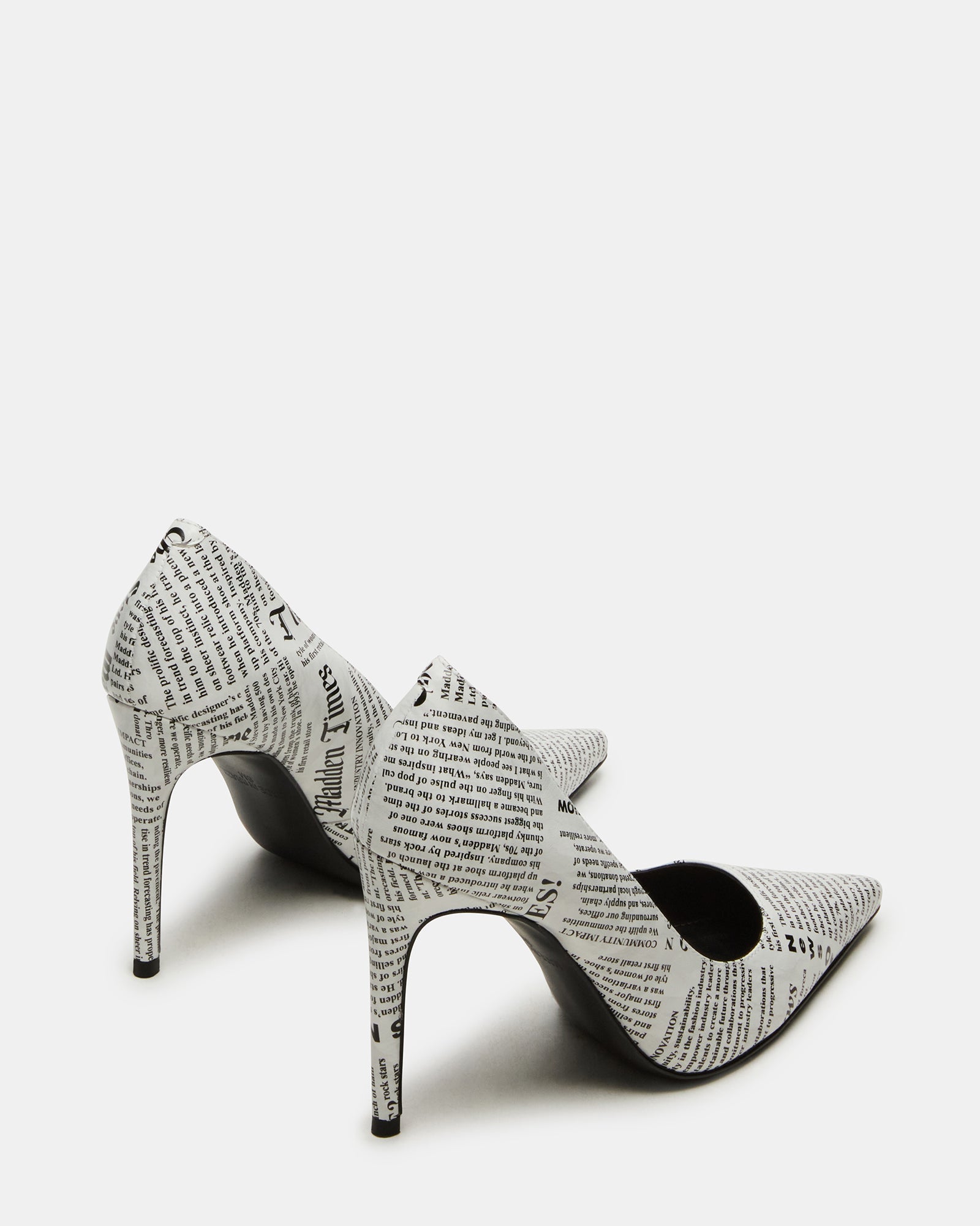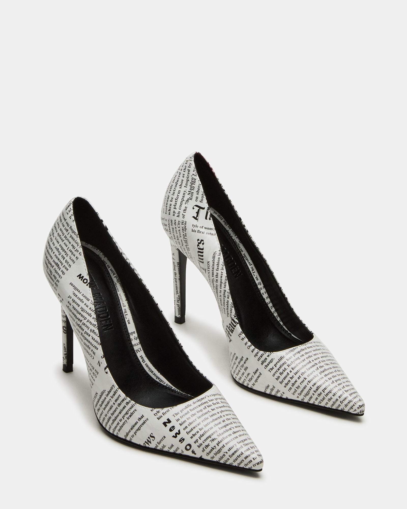 Timeless NOIR NEWSPAPER pumps elevate any outfit with a sleek pointed toe and a classic stiletto heel.