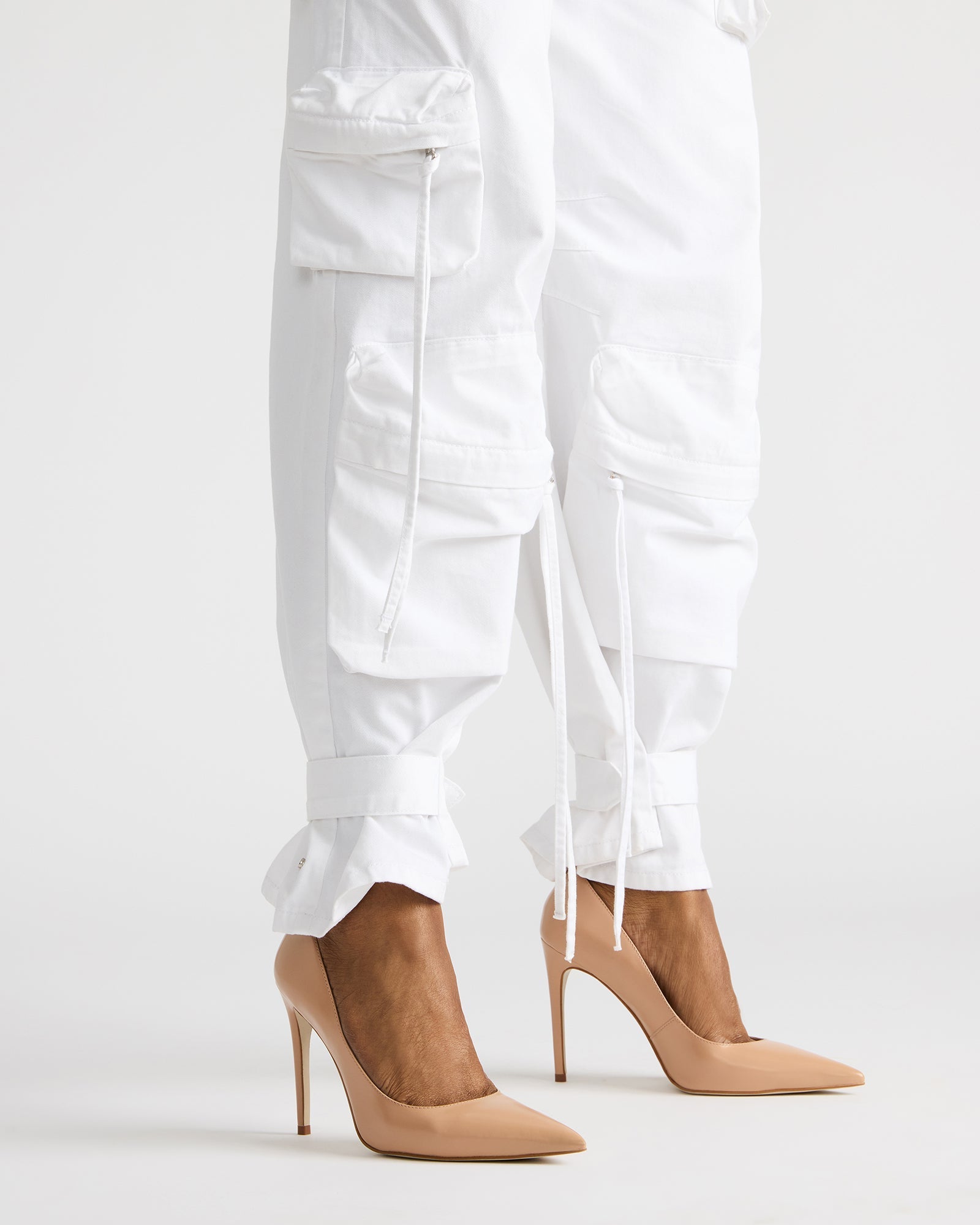 - Pointed-toe design paired with a four-inch stiletto heel.