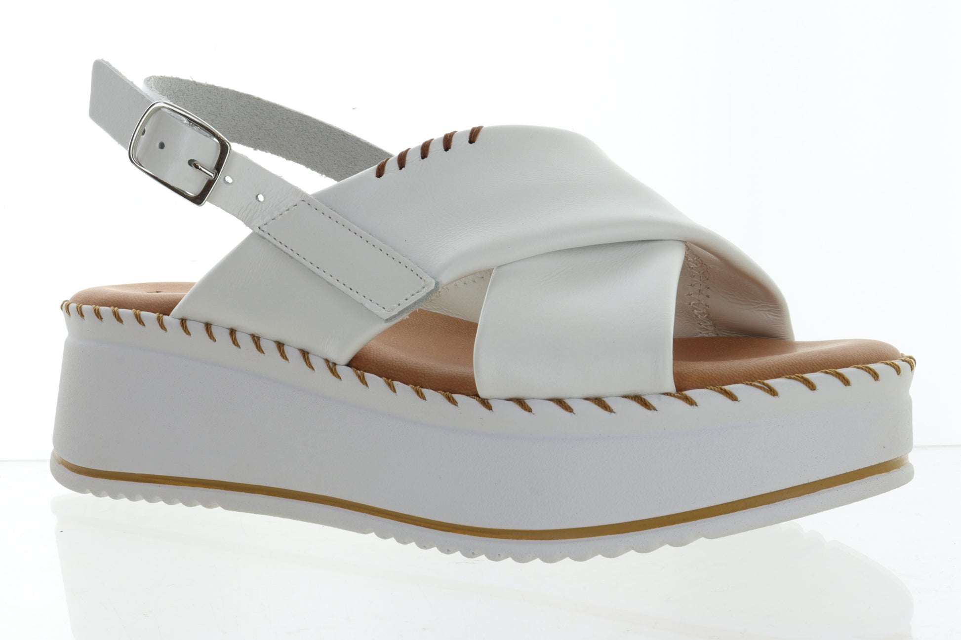 The PC Aphrodite sandals pair genuine leather with a platform wedge to balance comfort and style for the season.