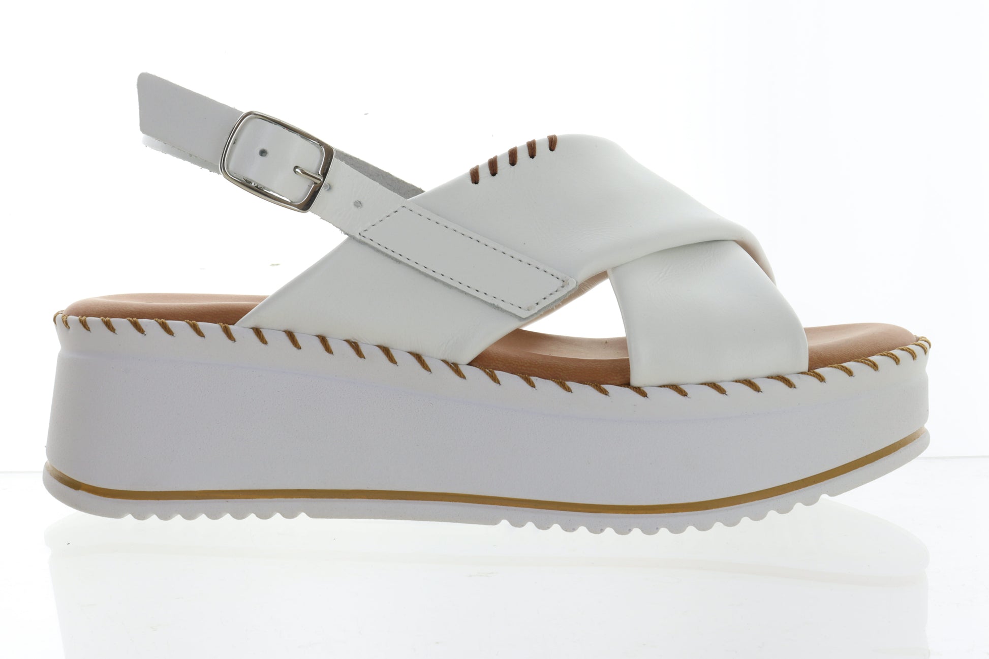 - Platform wedge provides comfortable, elevated style