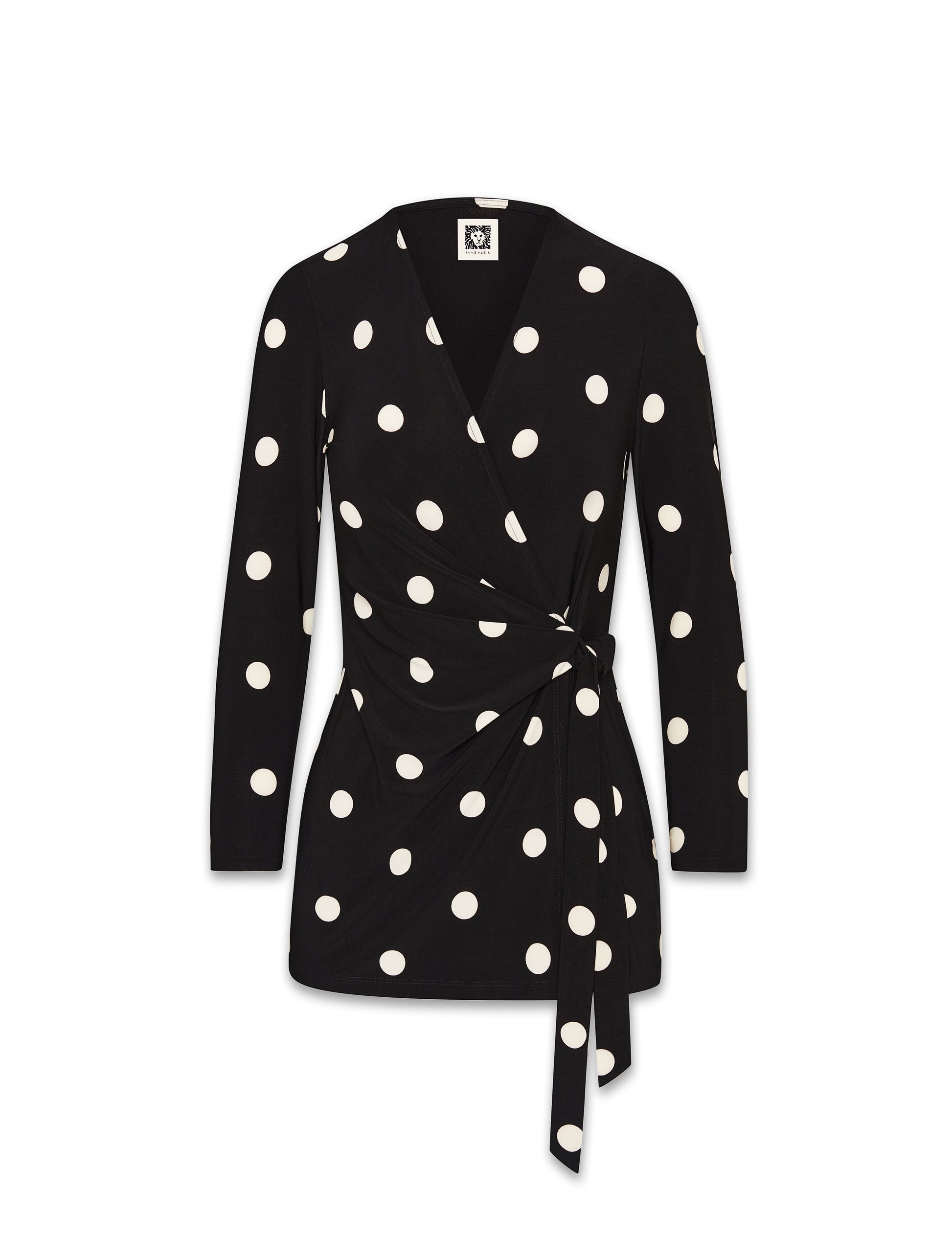 Make a bold statement in a playful printed top with a flattering faux wrap silhouette.