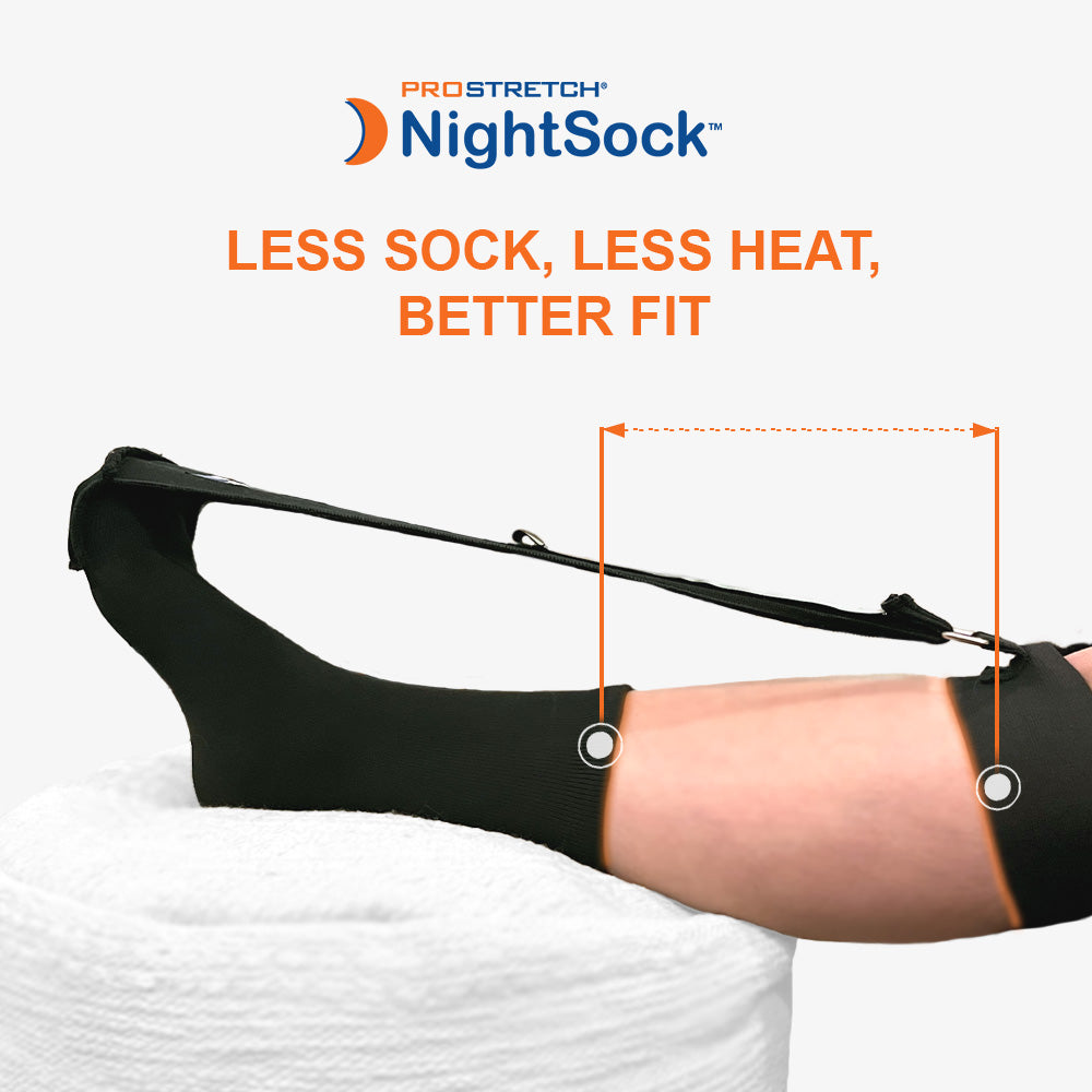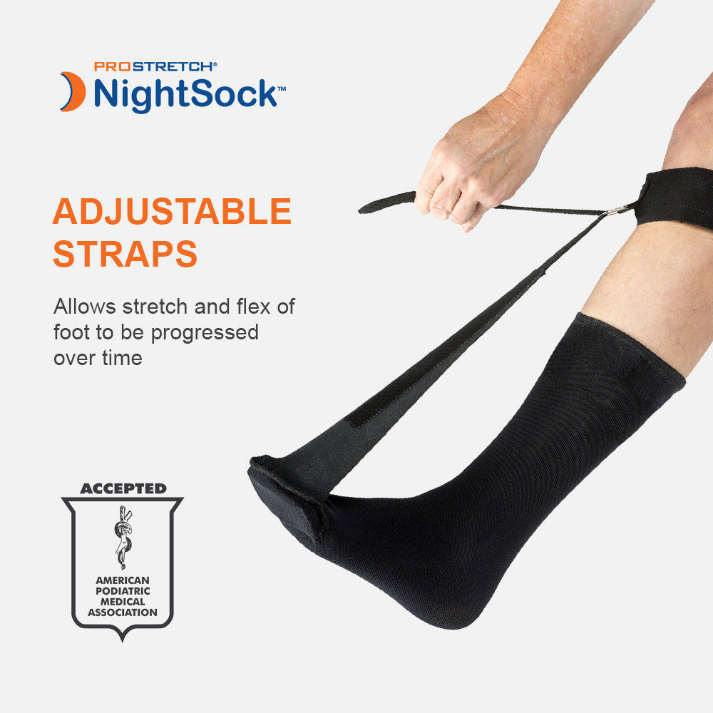 The ProStretch NightSock, with its patent-pending design, keeps the foot slightly flexed overnight to stretch the Achilles, calf, and plantar fascia.