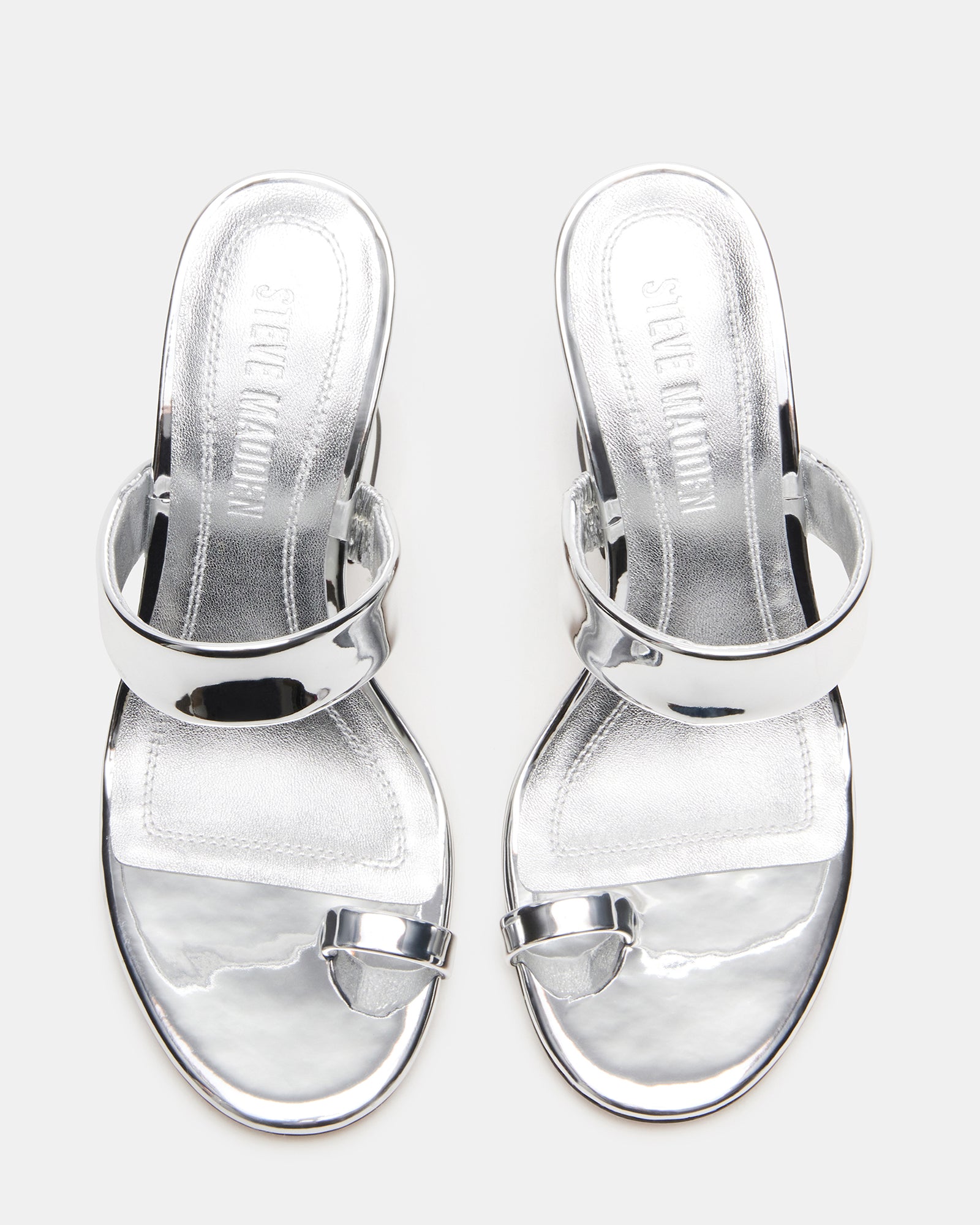 RENIE SILVER mule blends modern sophistication with a rounded toe and angular heel for a chic, versatile look.