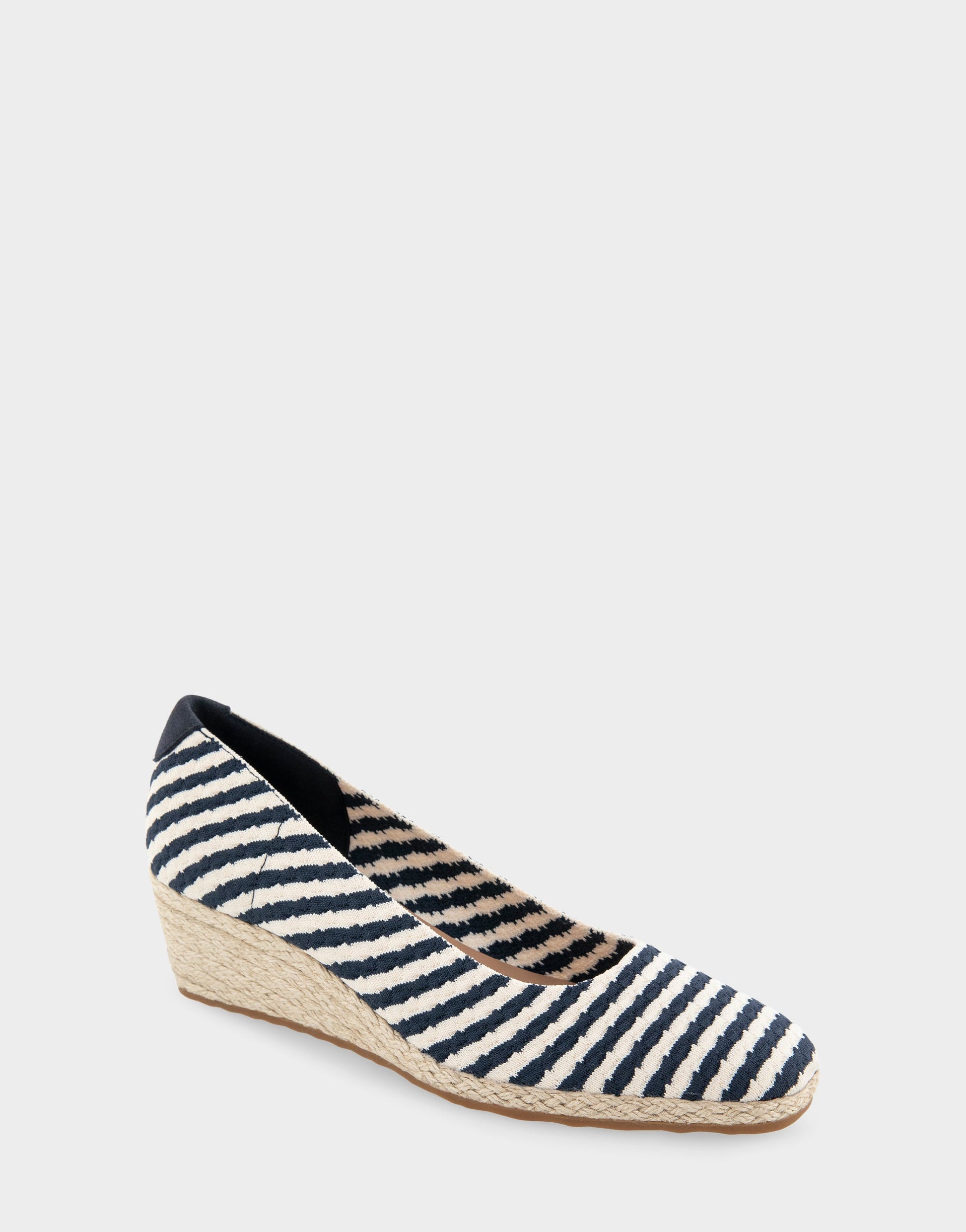 The Roma Wedge Espadrille Pump combines elegance and comfort. With a low wedge design and step-in construction, it features a Diamond Flex Outsole for enhanced traction and an OrthoLite foam insole for superior cushioning. Perfect for all-day wear, this pump offers both style and support.