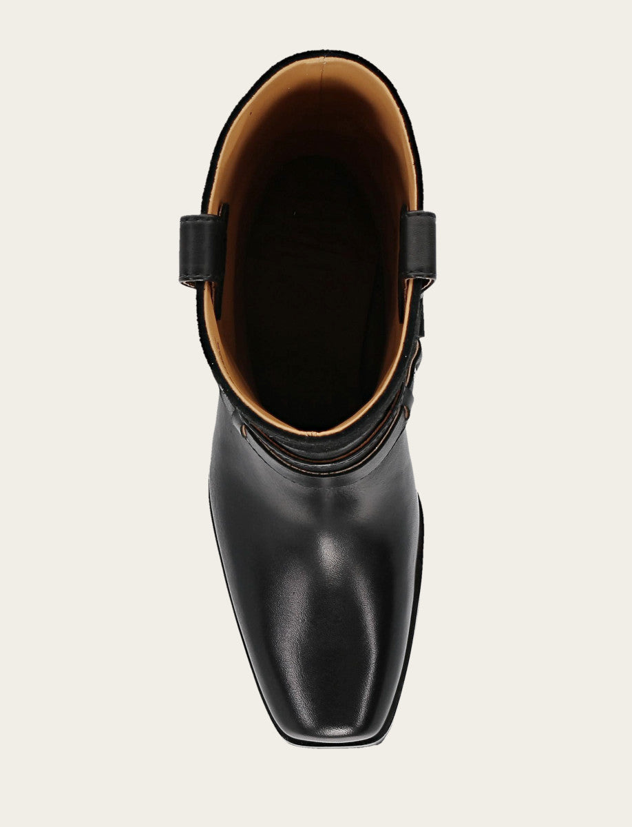 This mid-calf boot blends moto-inspired style with premium materials for a bold, textured look.