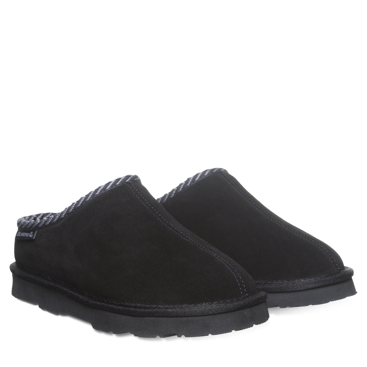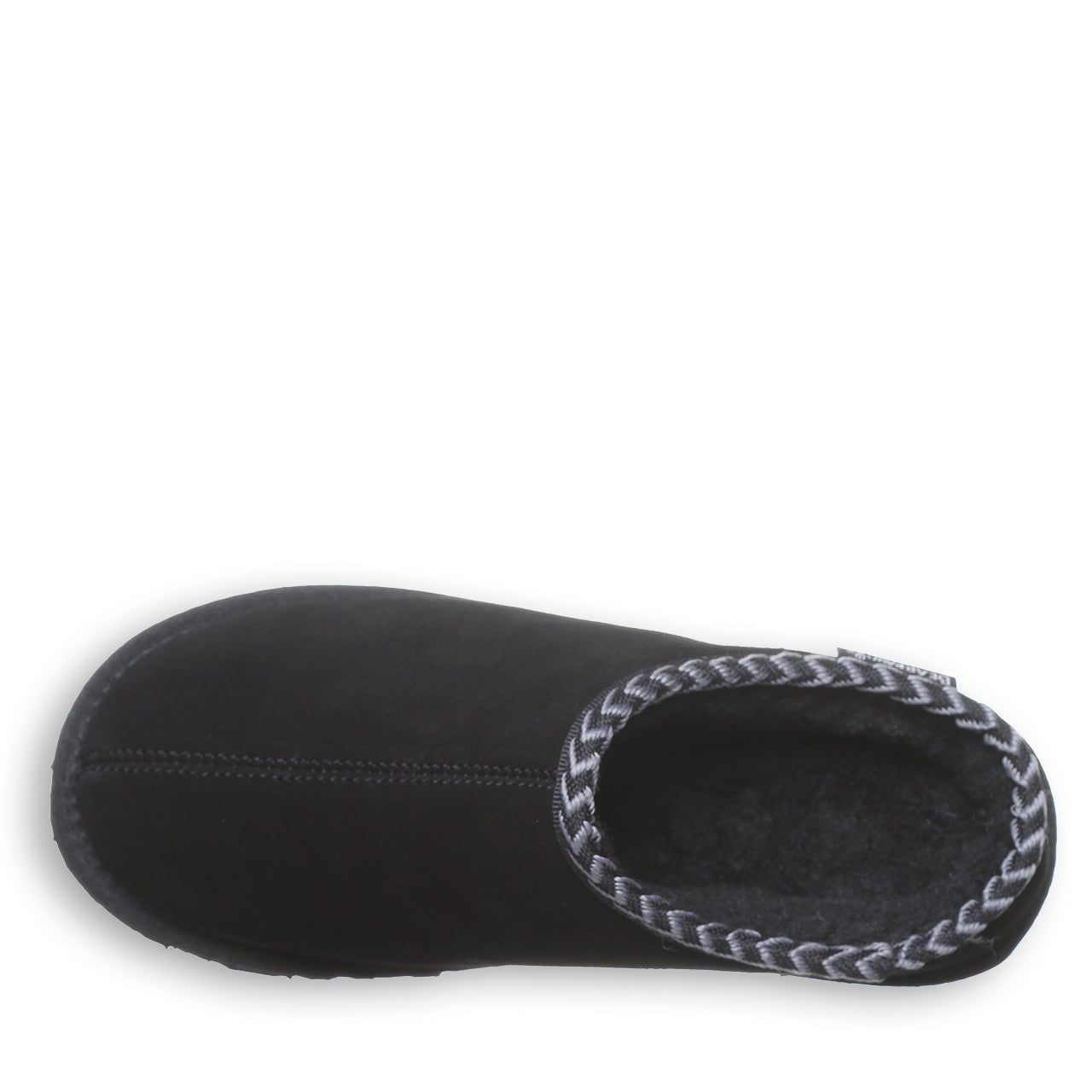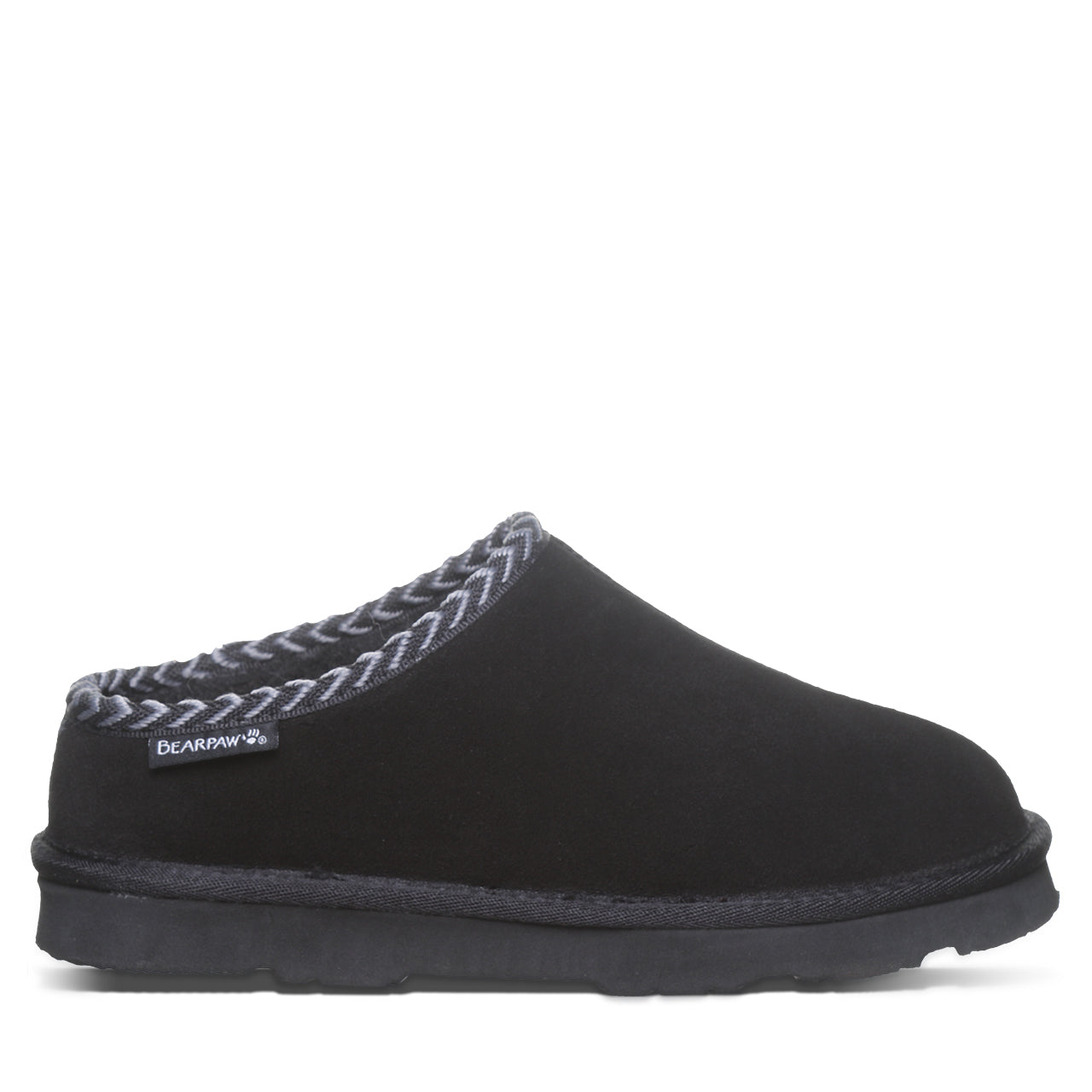 Bearpaw Tabitha Black slippers are designed for indoor lounging and light outdoor wear, with a soft wool lining that adds warmth.