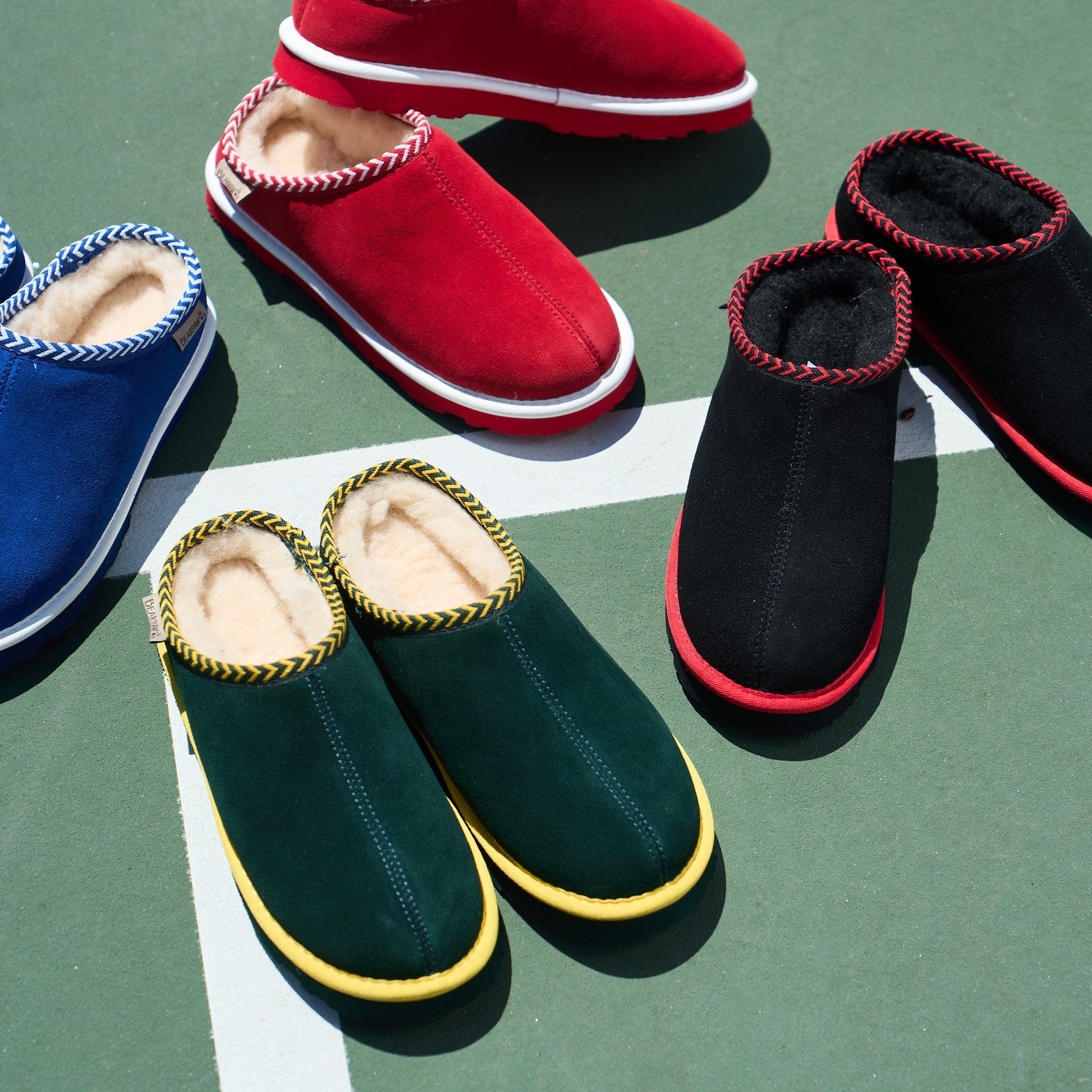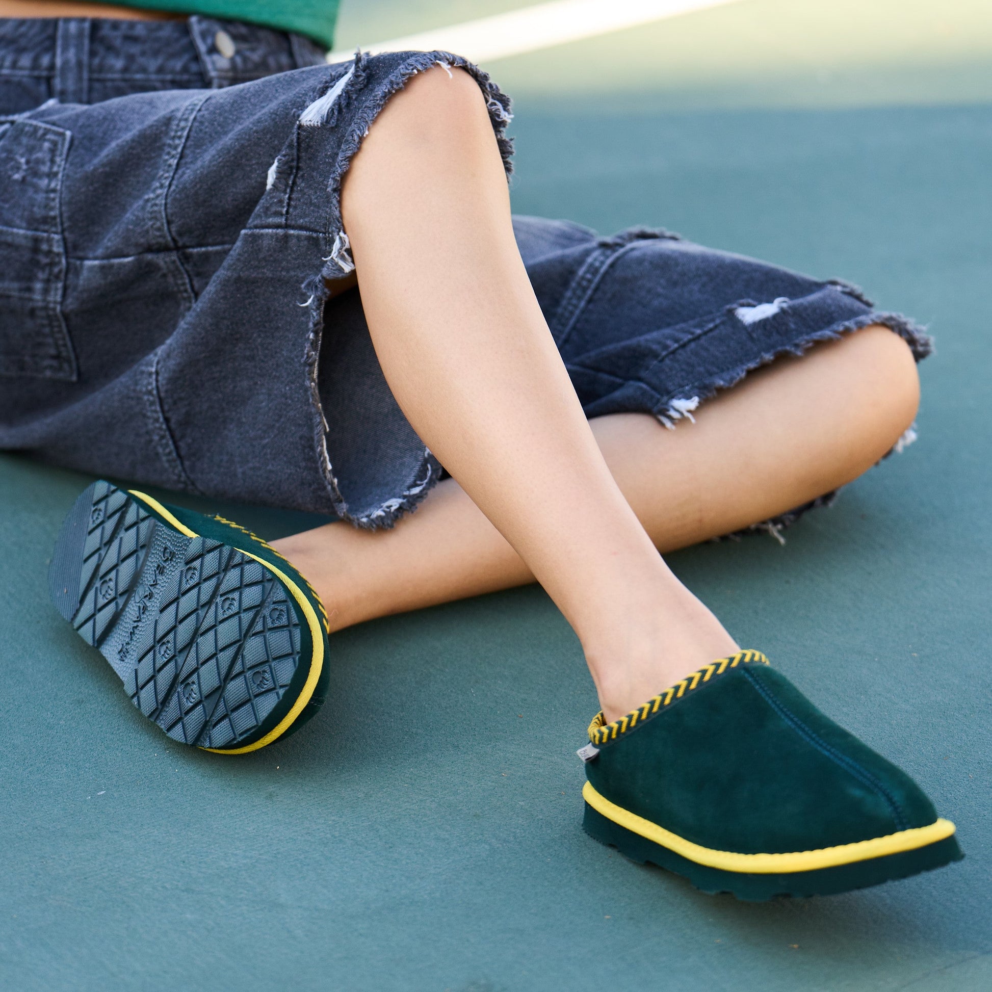 The Tabitha Green/Yellow boots pair a soft wool-blend lining with a suede exterior and a rubber sole for durability and a lightweight feel.
