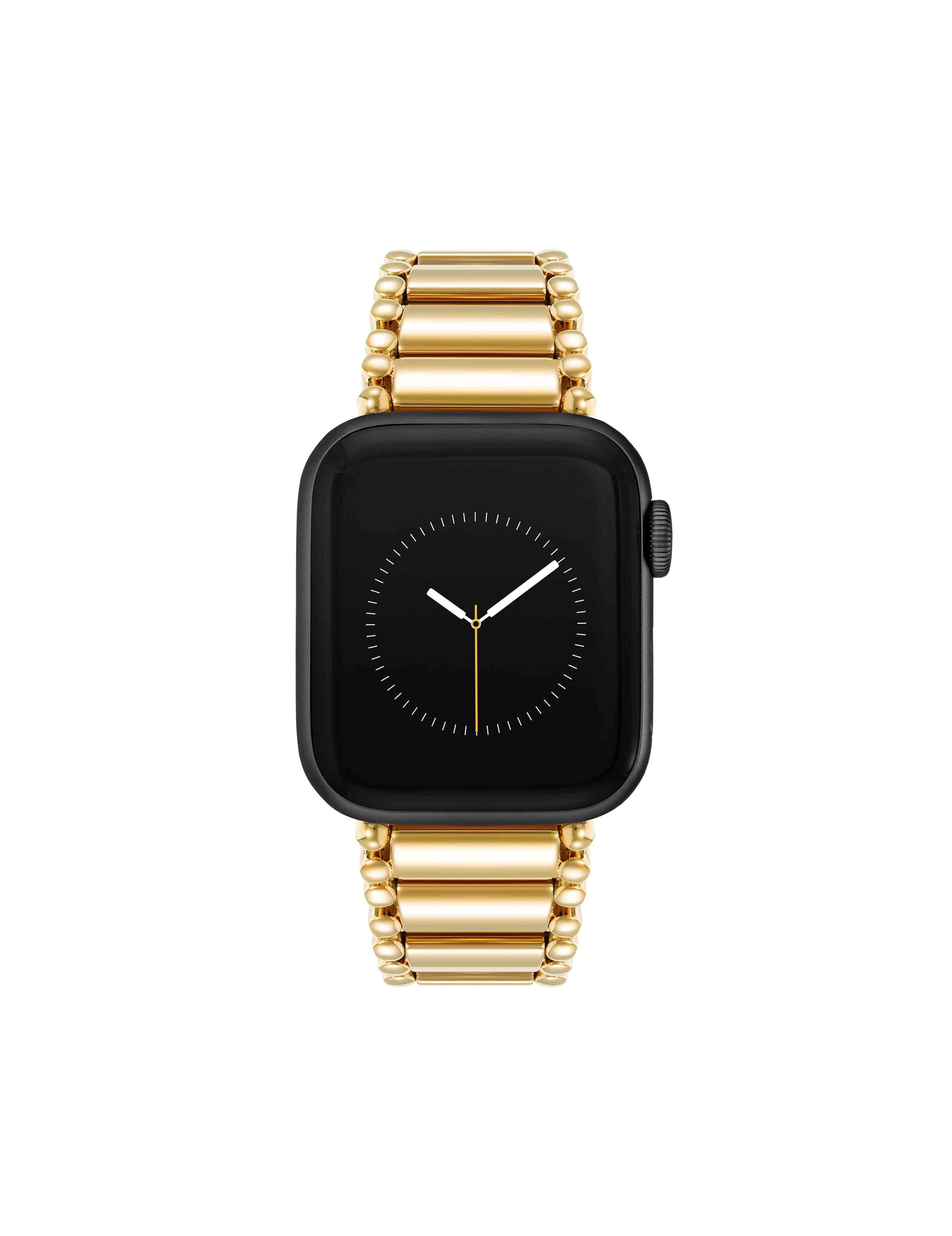 Elevate your Apple Watch with a tapered link band featuring bead-accented edges that blend poise with style.