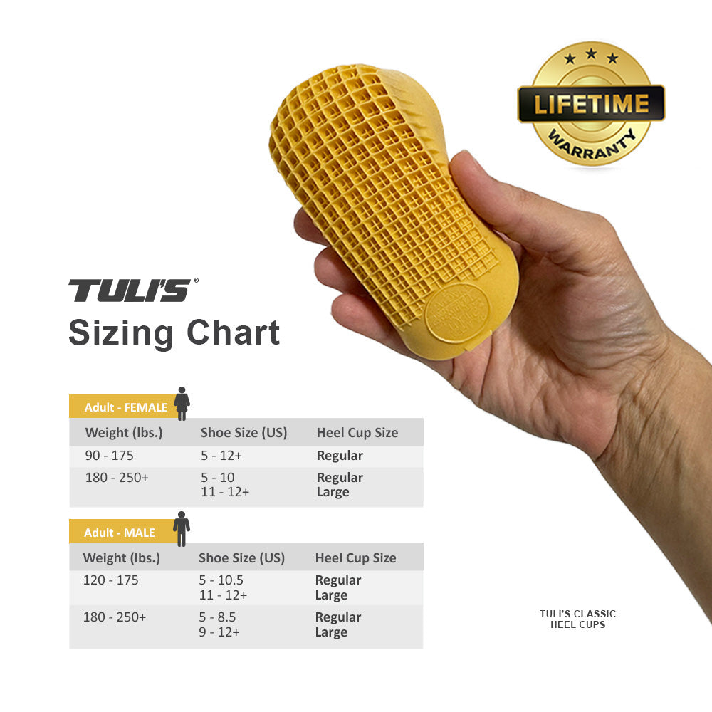 Tuli's Classic Heel Cups are designed to support and cushion feet all day long. They are made from high-quality, durable, and effective materials. The heel cups are flexible enough to fit any closed shoe, yet they provide enough support to keep feet comfortable and protected.