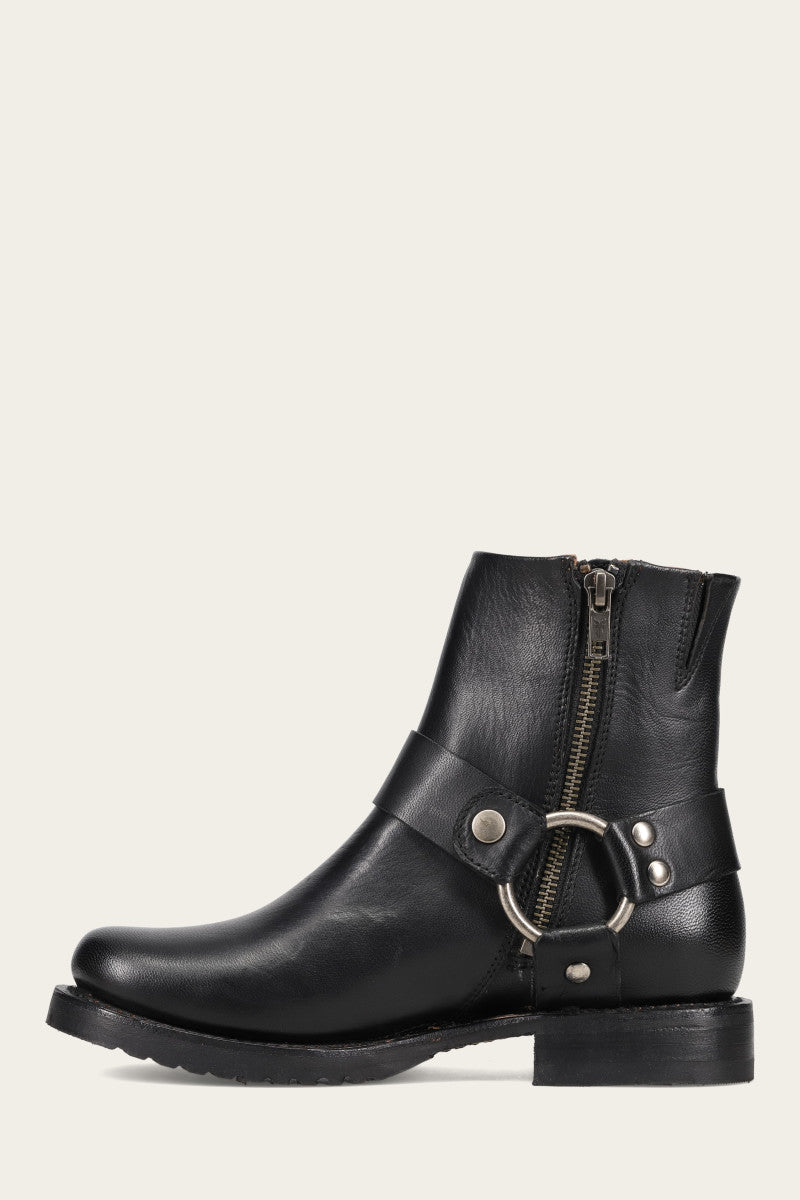 The Veronica Flex Harness Boot is a timeless bootie built from premium materials, featuring a flexible outsole designed for immediate comfort. An interior zip enables quick on-and-off entry.